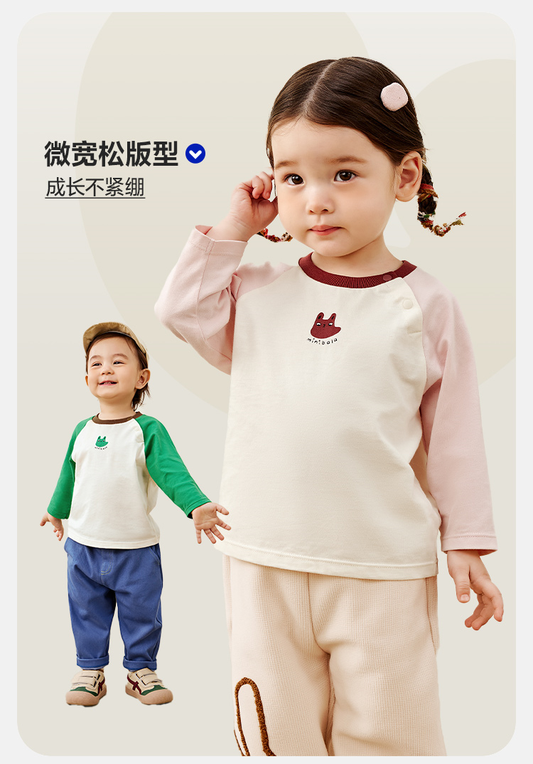 【糯米T】迷你巴拉男童女童儿童长袖T恤秋季纯棉软糯上衣