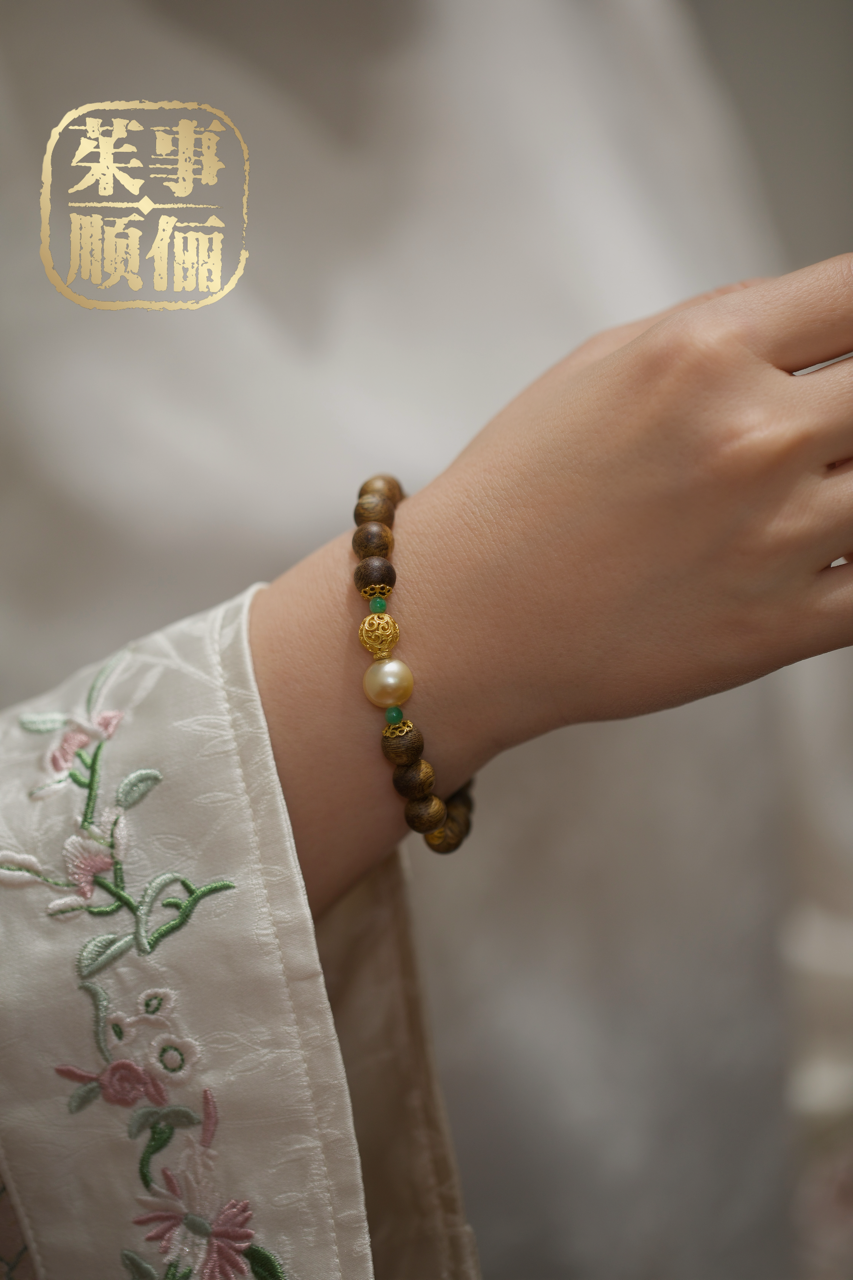 【茱事顺俪】18k金沉香珍珠翡翠手链