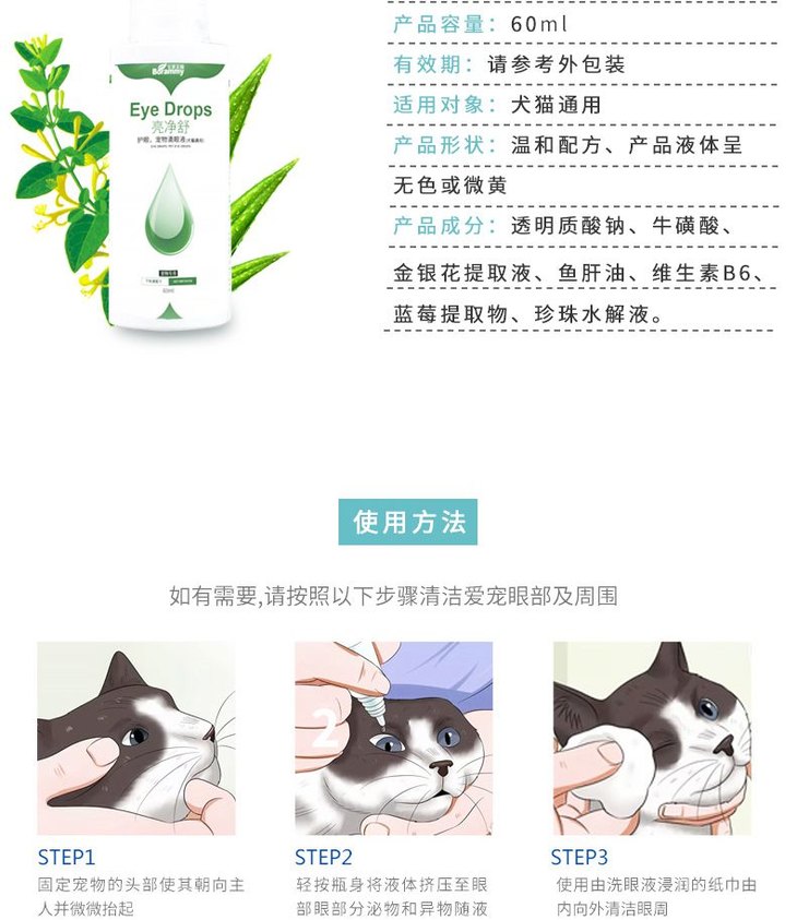 宝莱美露亮净舒宠物滴眼液60ml 狗狗滴眼液洗眼液去泪痕