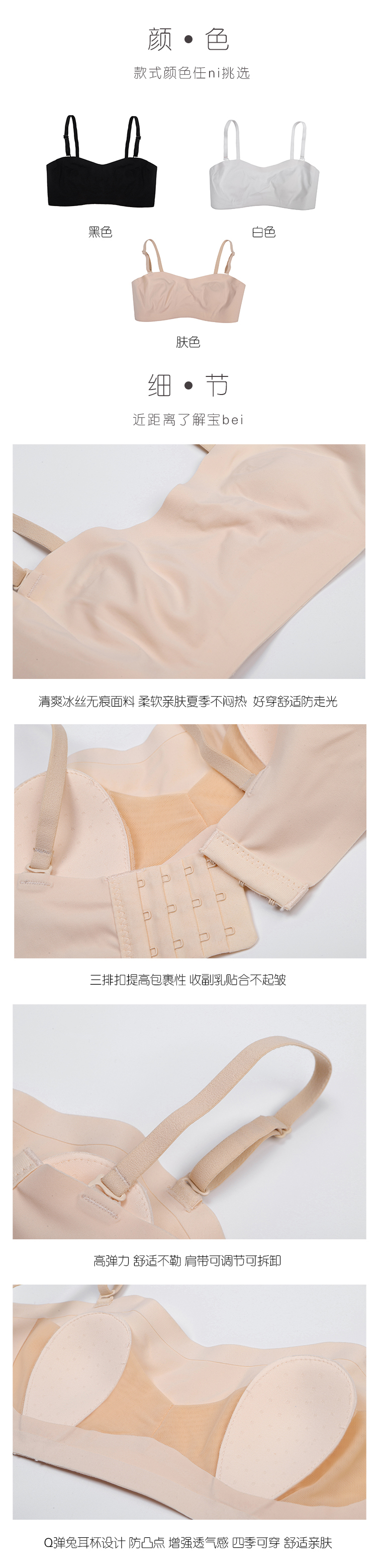 【无痕兔耳无肩带防滑两穿】Bra 薄款抹胸内衣女小胸聚拢文胸夏