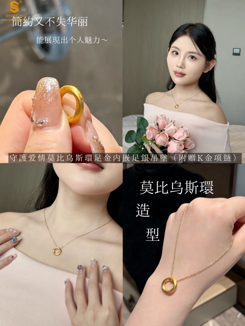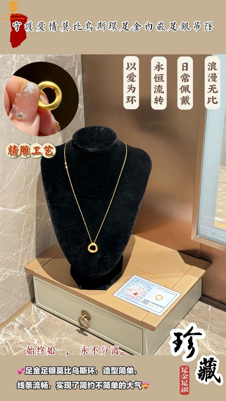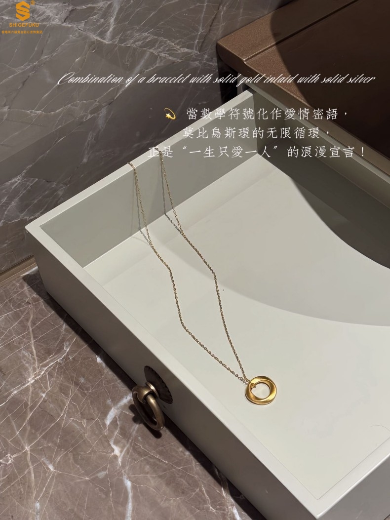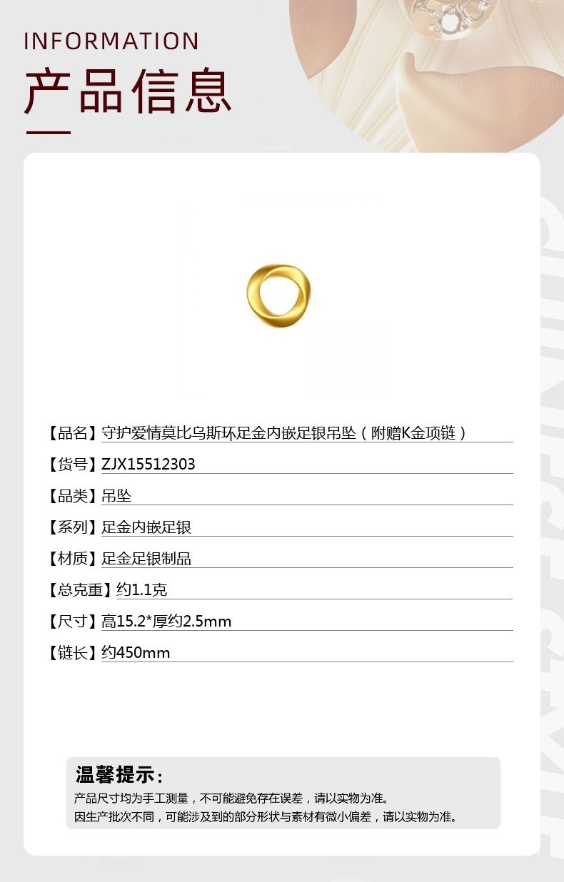 【品名】守护爱情莫比乌斯环足金内嵌足银吊坠(附赠K金项链)