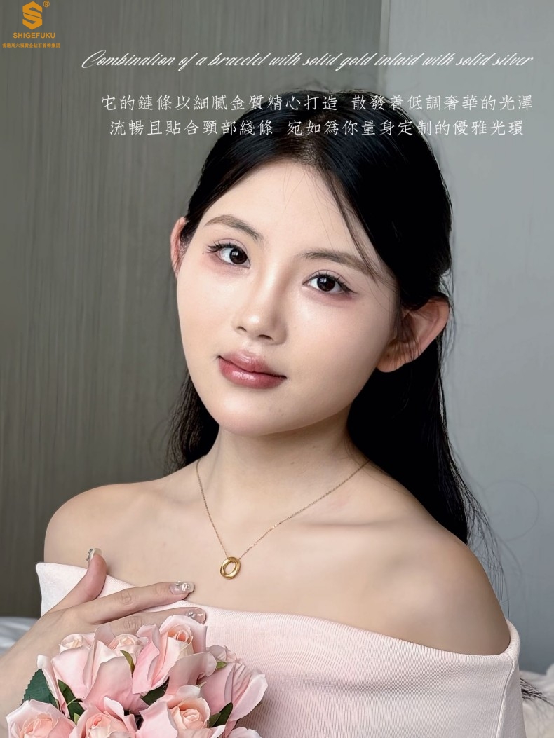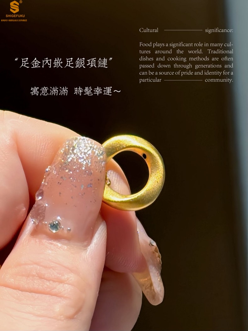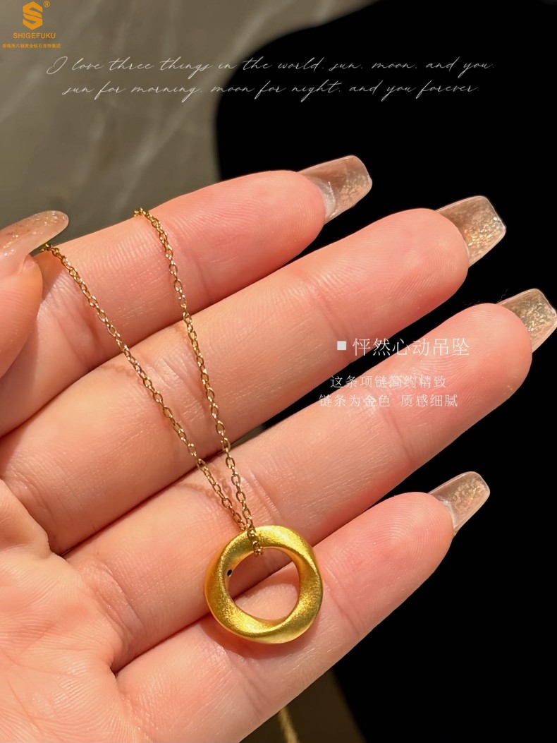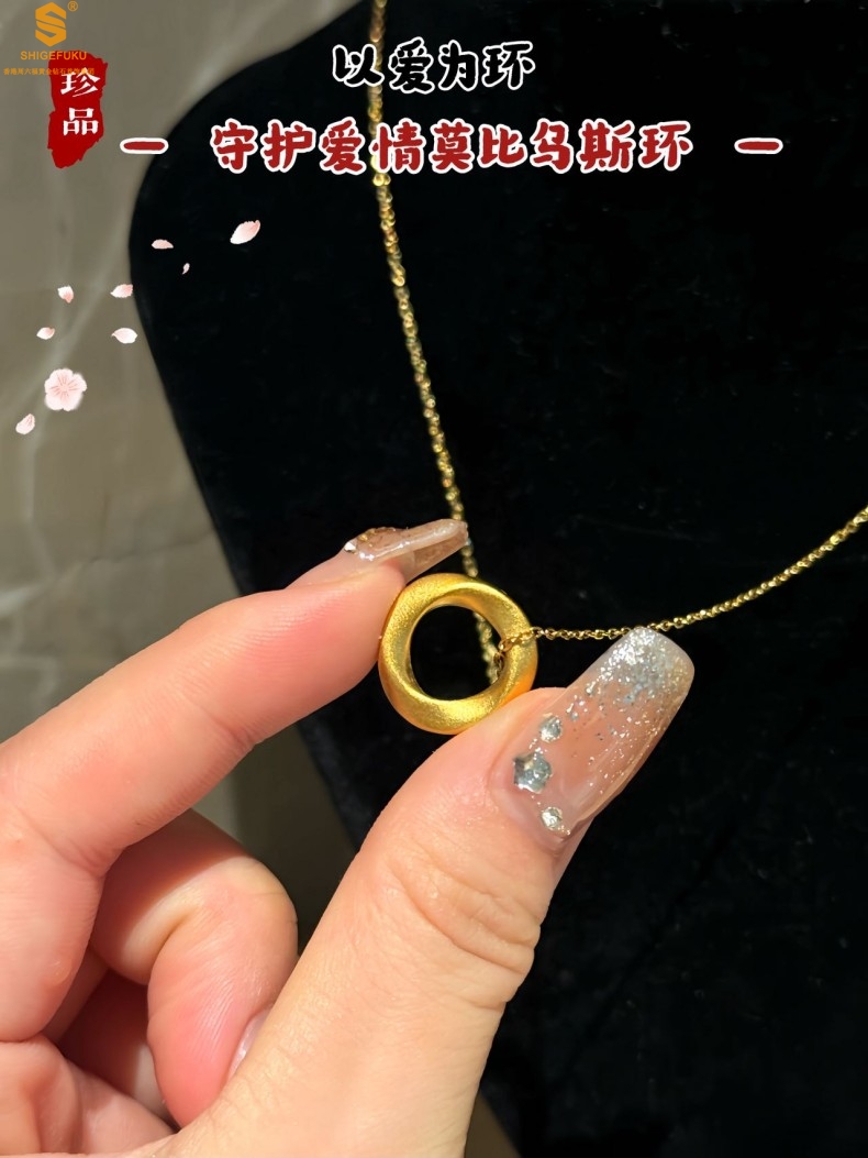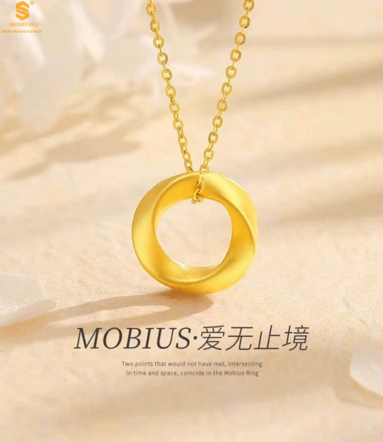 【品名】守护爱情莫比乌斯环足金内嵌足银吊坠(附赠K金项链)