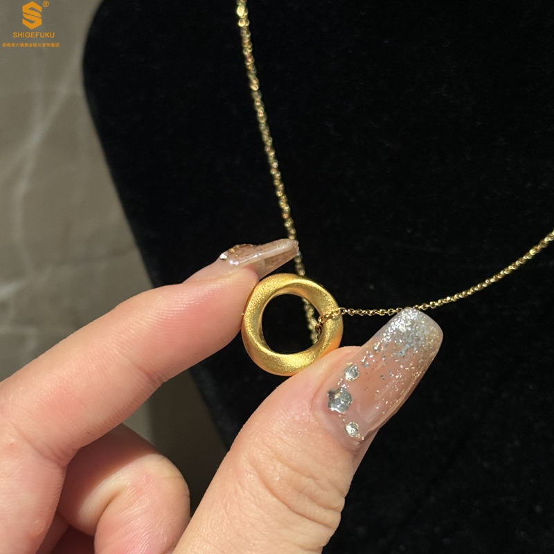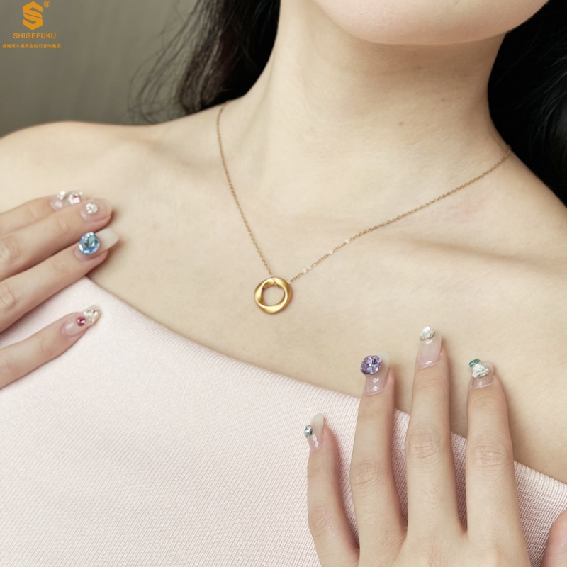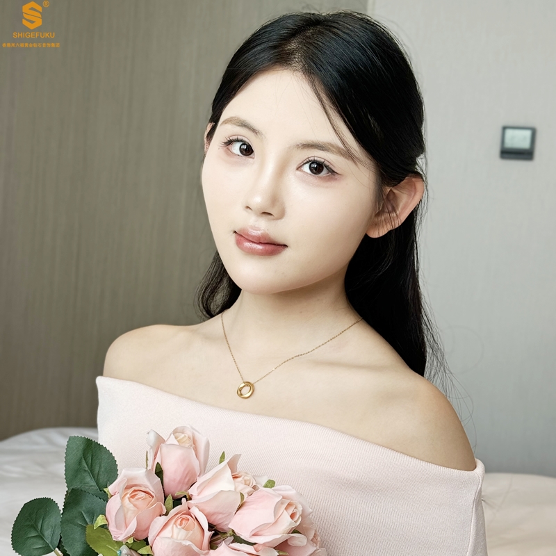 【品牌授权】【香港周六福】黄金钻石首饰 守护爱情莫比乌斯环足金内嵌足银吊坠(附赠K金项链)