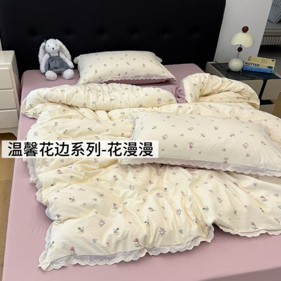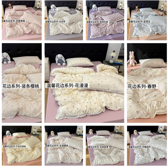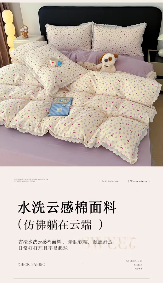 2️⃣0️⃣2️⃣6️⃣🍬春季新品~【温馨花边系列-古法水洗云感皱皱纱4件套】 💫星河滚烫,你是人间理想,古法砂洗工艺色牢度更高,色彩更漂亮,手感软软糯糯超柔超舒服~