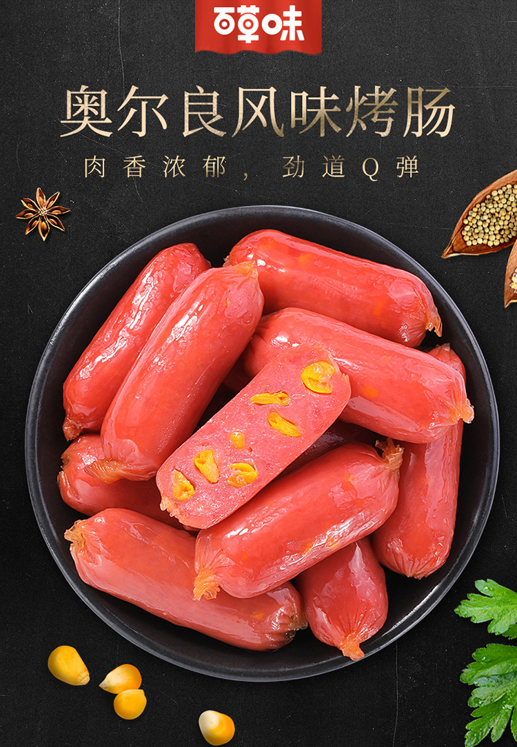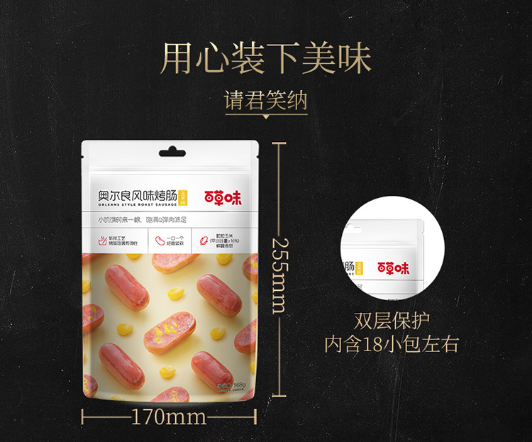 【满299减210】百草味奥尔良风味烤肠168g 肉香浓郁,醇厚入味