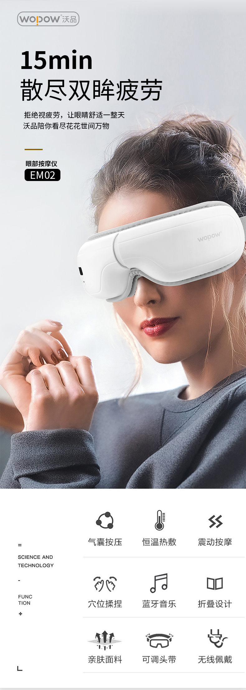 沃品(WOPOW)EM02眼部按摩仪屏显 小巧方便携带 白色