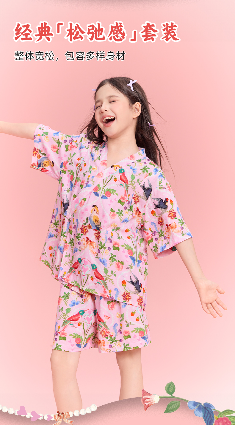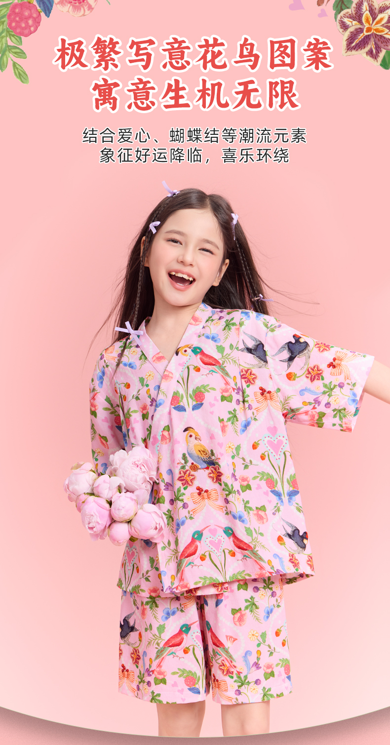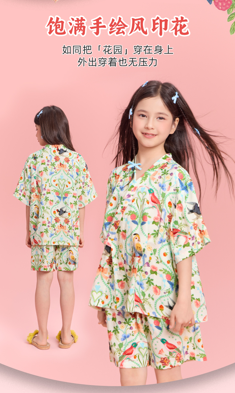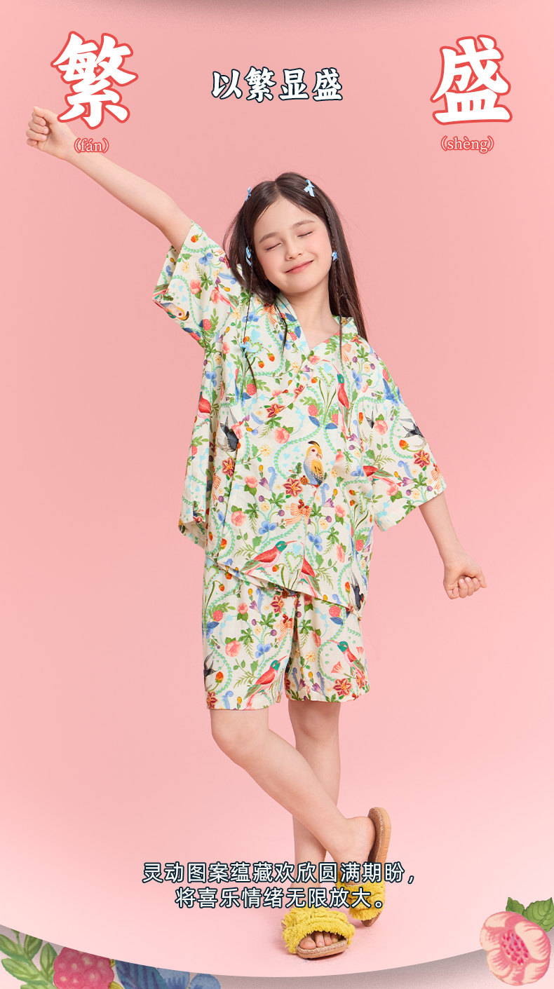 年衣童装25夏季新款中式国风居家内衣短袖裤子繁花假日家居服