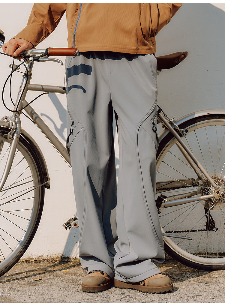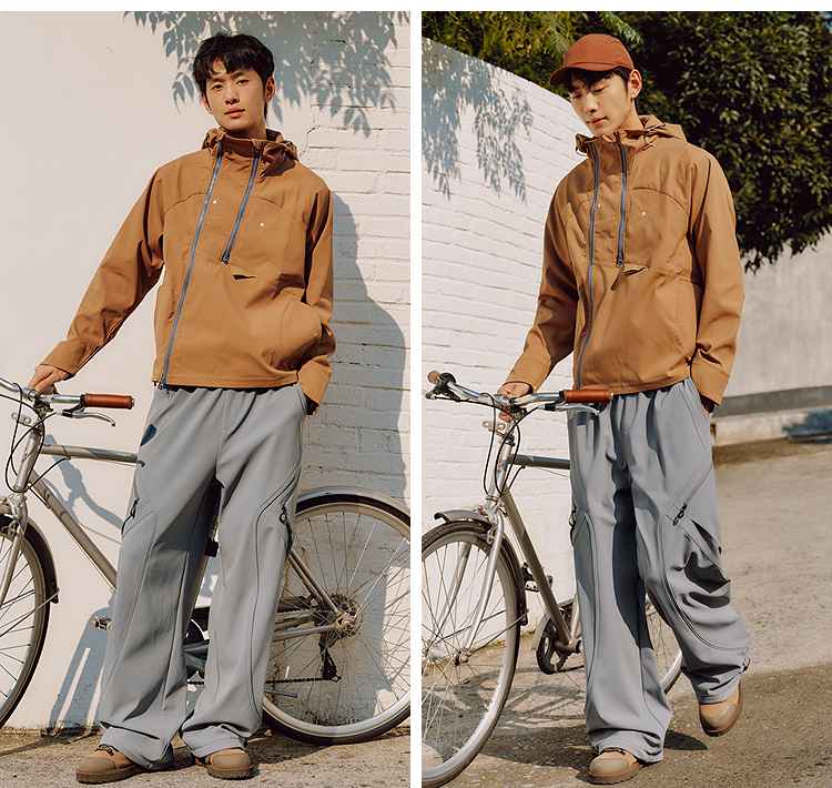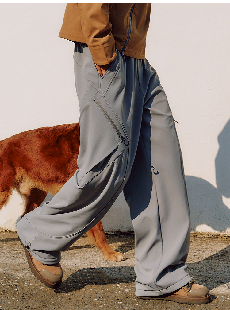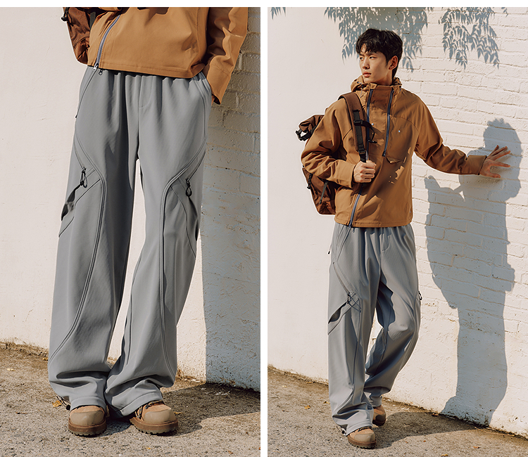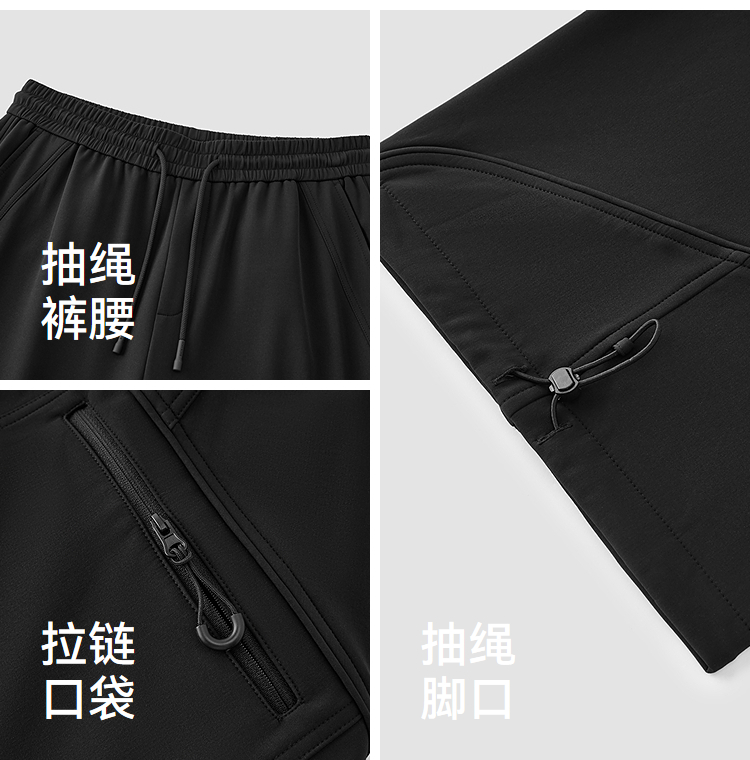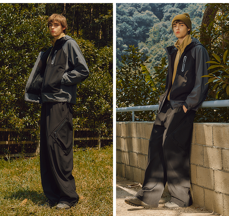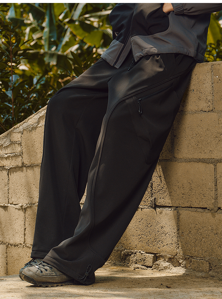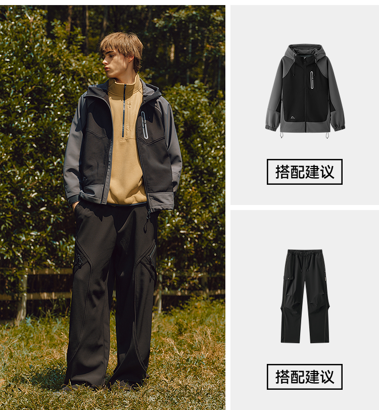 森马休闲裤男冬季加绒宽松直筒裤2025新款拼接时尚户外长裤子黑色