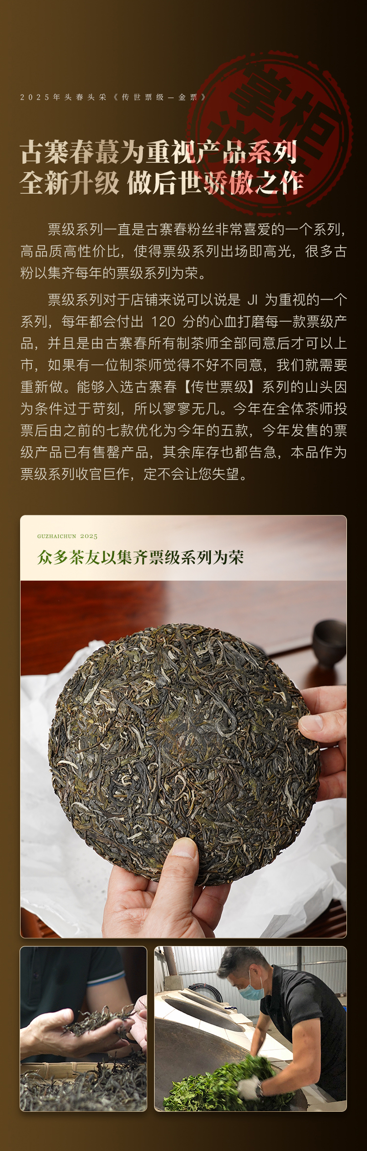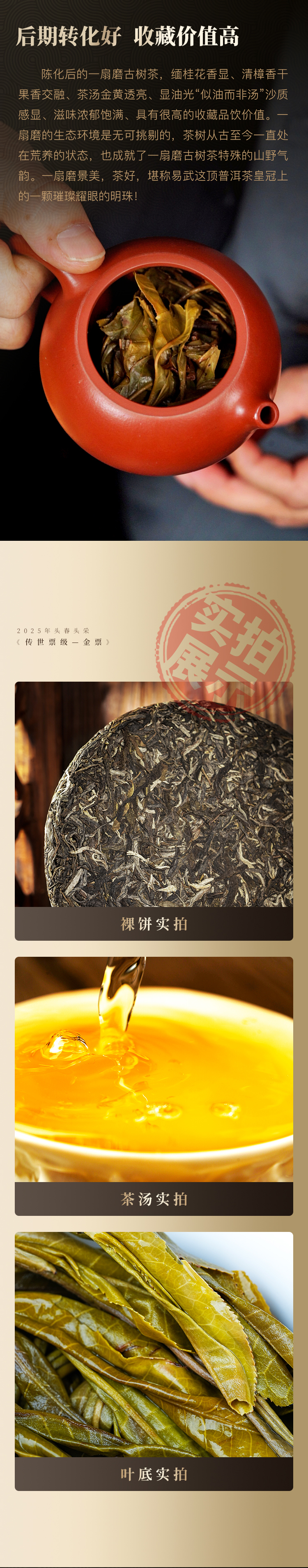 最后十几饼【金票】2025年易武茶区一扇磨古树票级系列重磅产品357克/饼拍5发6