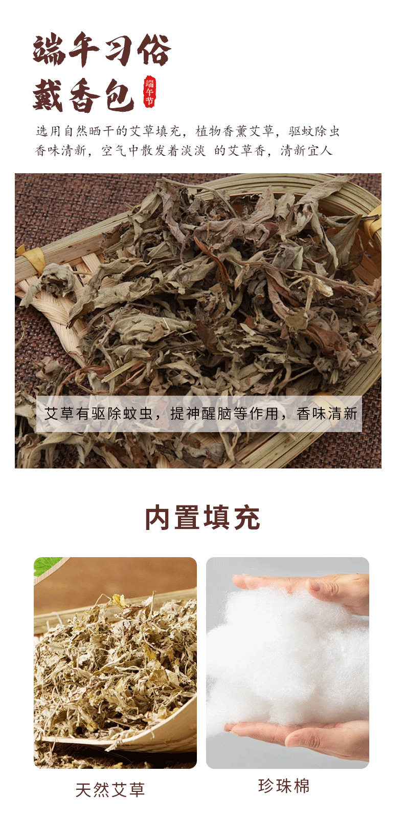 【端午节香包】印花艾草填充好香囊端午礼品香包挂件传统香囊,双面印花 祝福双倍,高清印刷,卡通可爱。ry