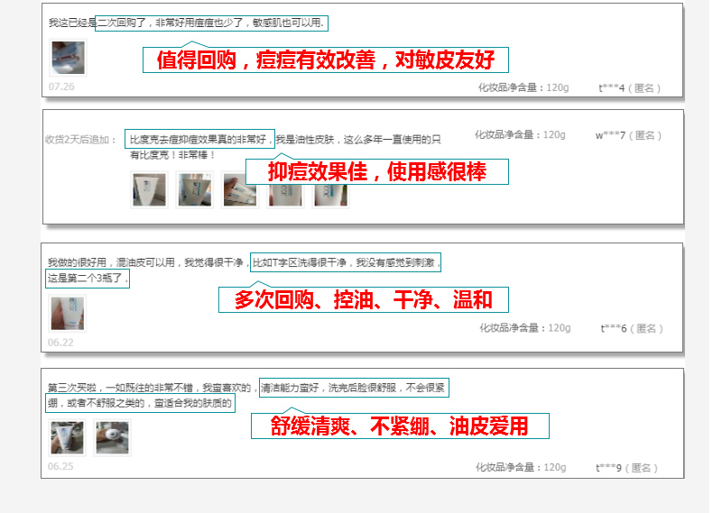 比度克控油抗痘洗面奶 抗痘控油洁面膏100g