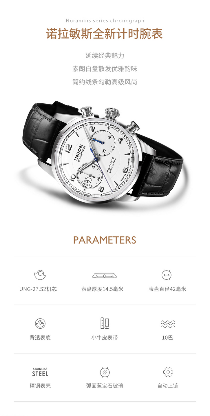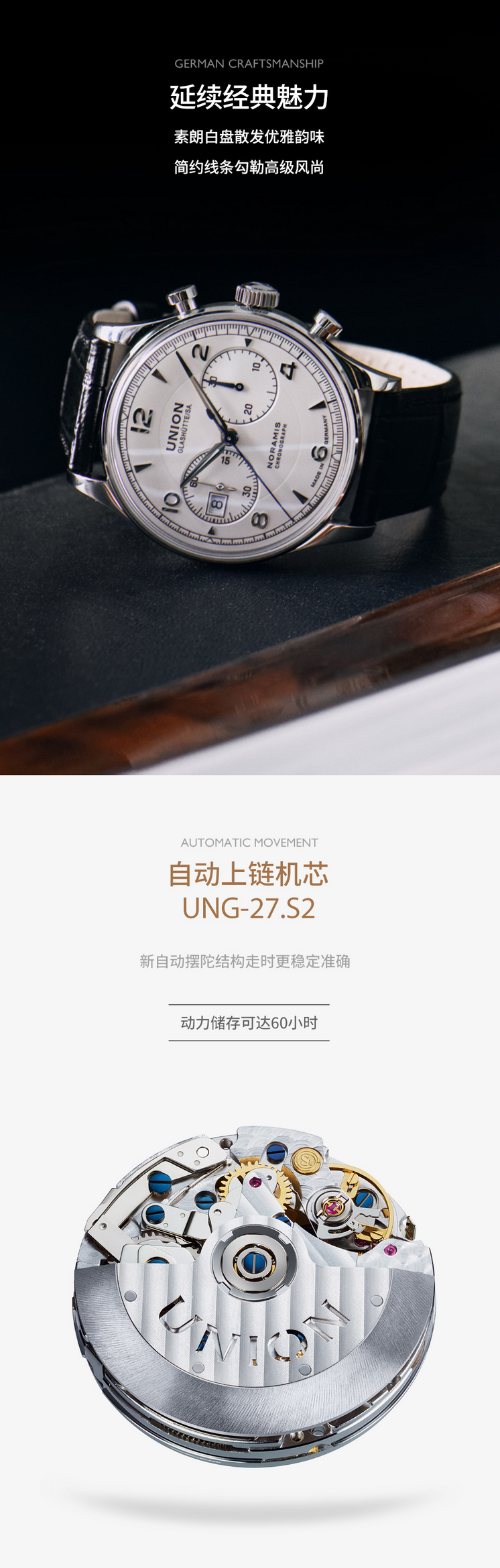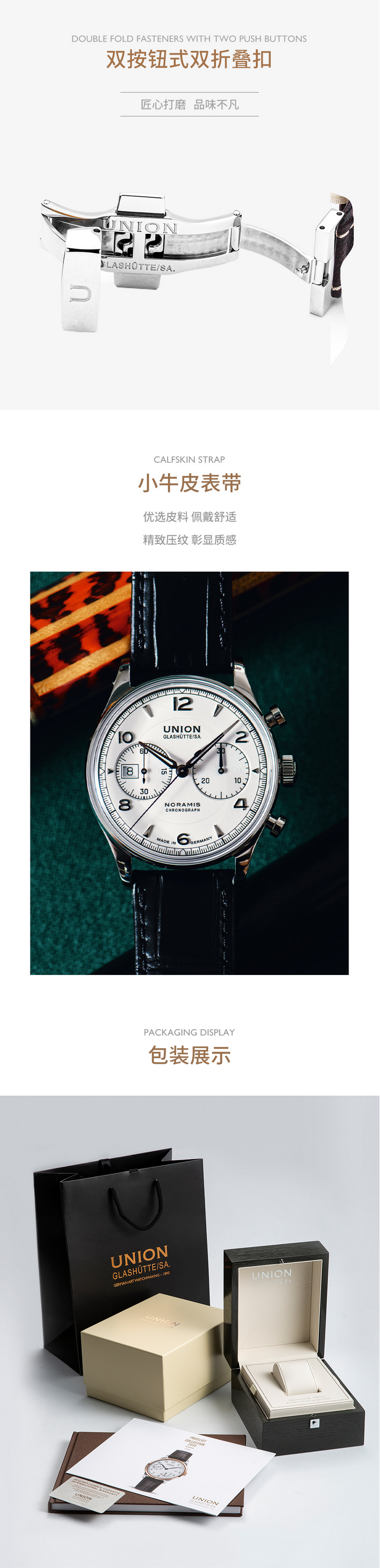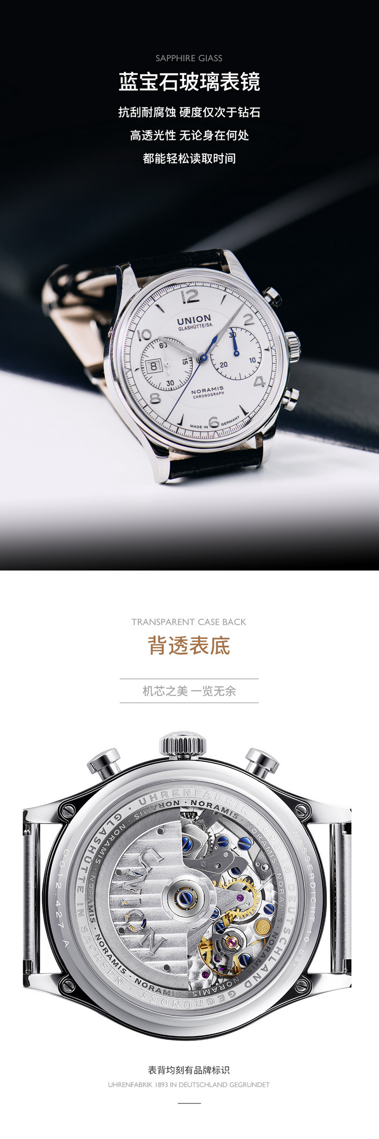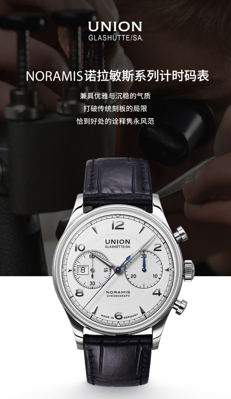 宇联(UNION GLASHÜTTE)德国手表 男士腕表 诺拉敏斯系列机械皮带计时码表 D012.427.16.017.00