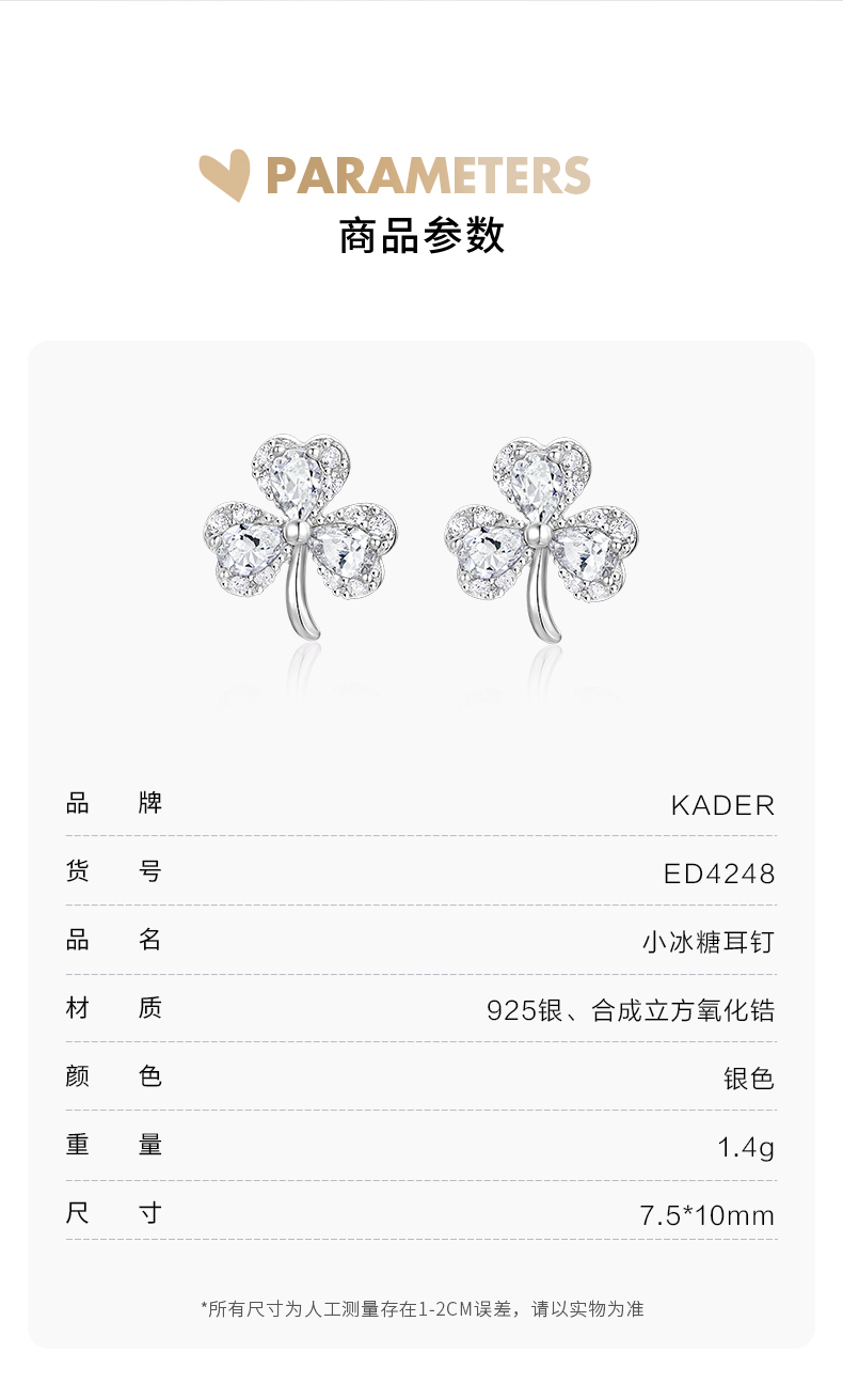 卡蒂罗/KADER 幸运三重奏耳钉 925银幸运三叶草简约百搭时尚通勤约会耳饰 甜美可爱在逃公主养耳洞 周年告白礼盒