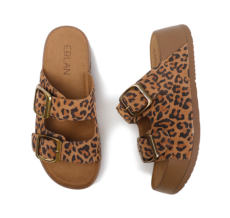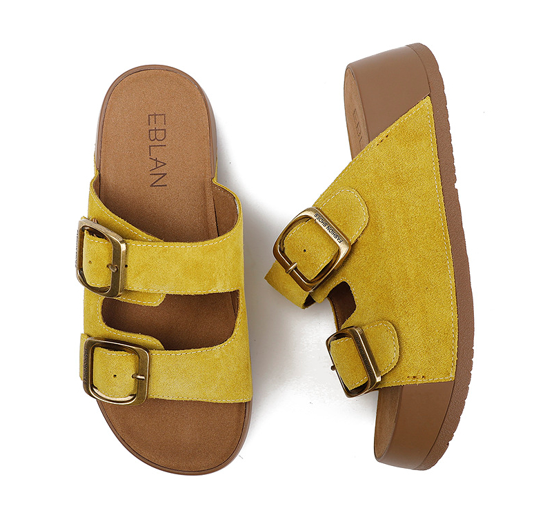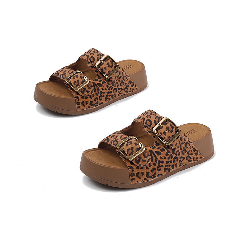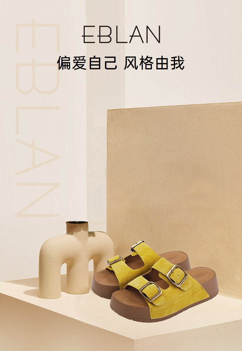 2楼伊伴2025年夏季懒人勃肯牛绒鞋面松弛厚底慵懒感凉鞋B25383309