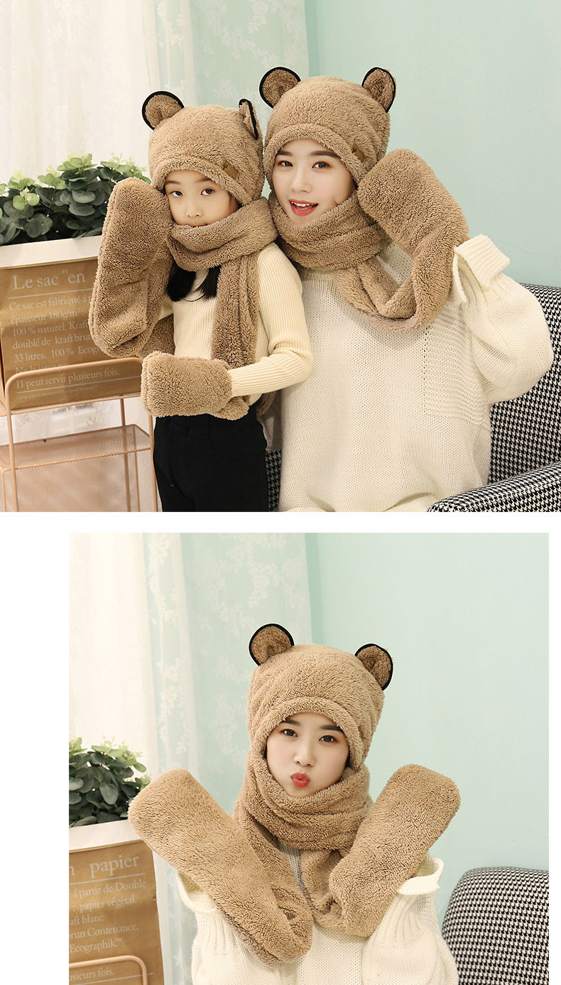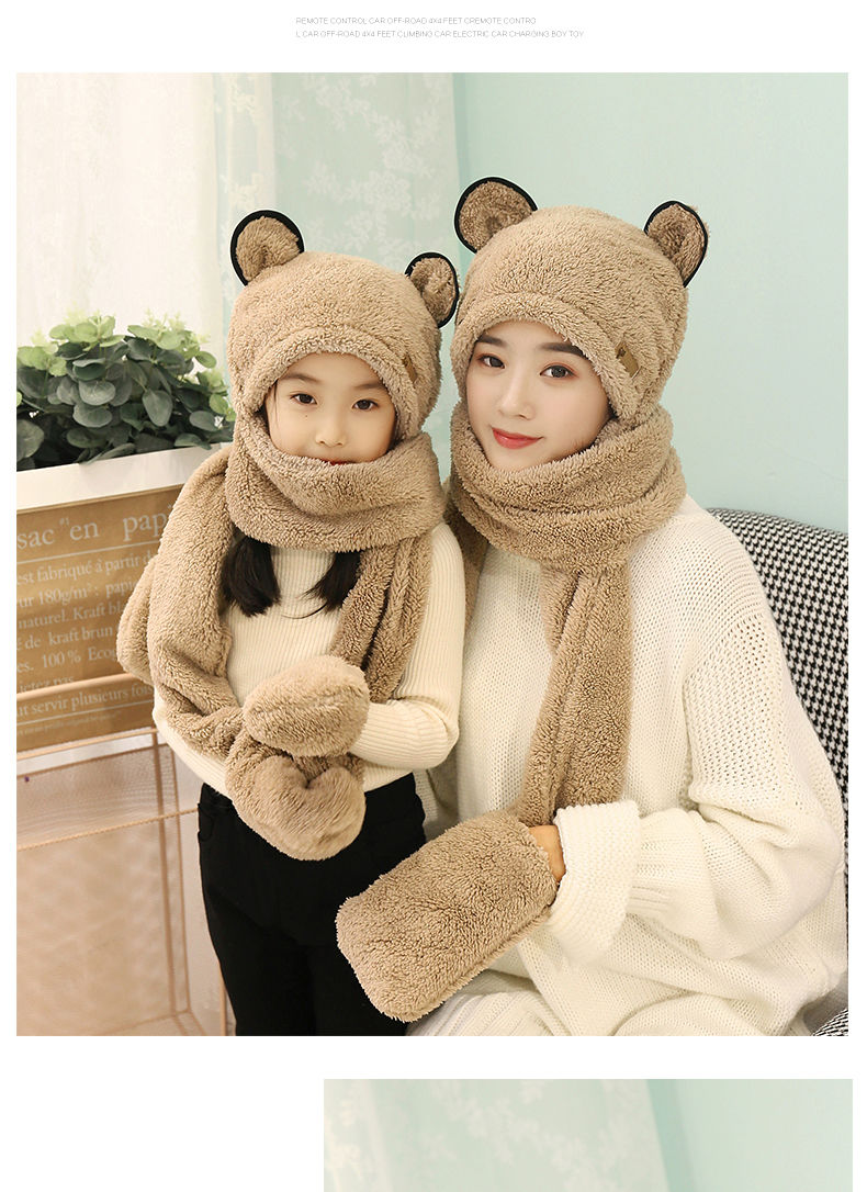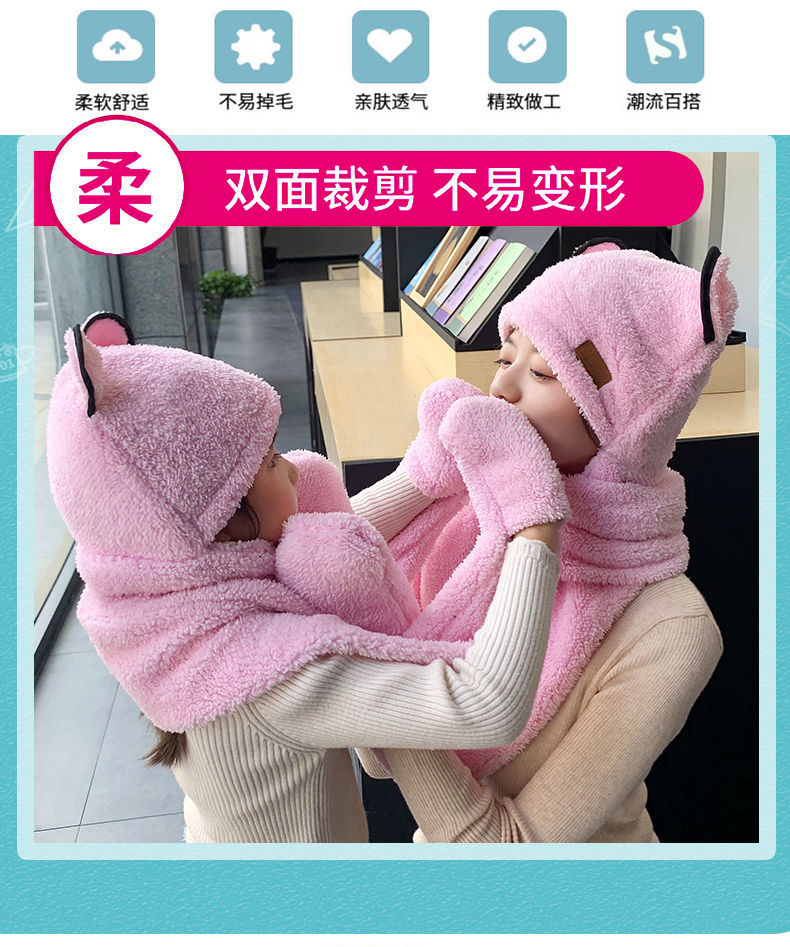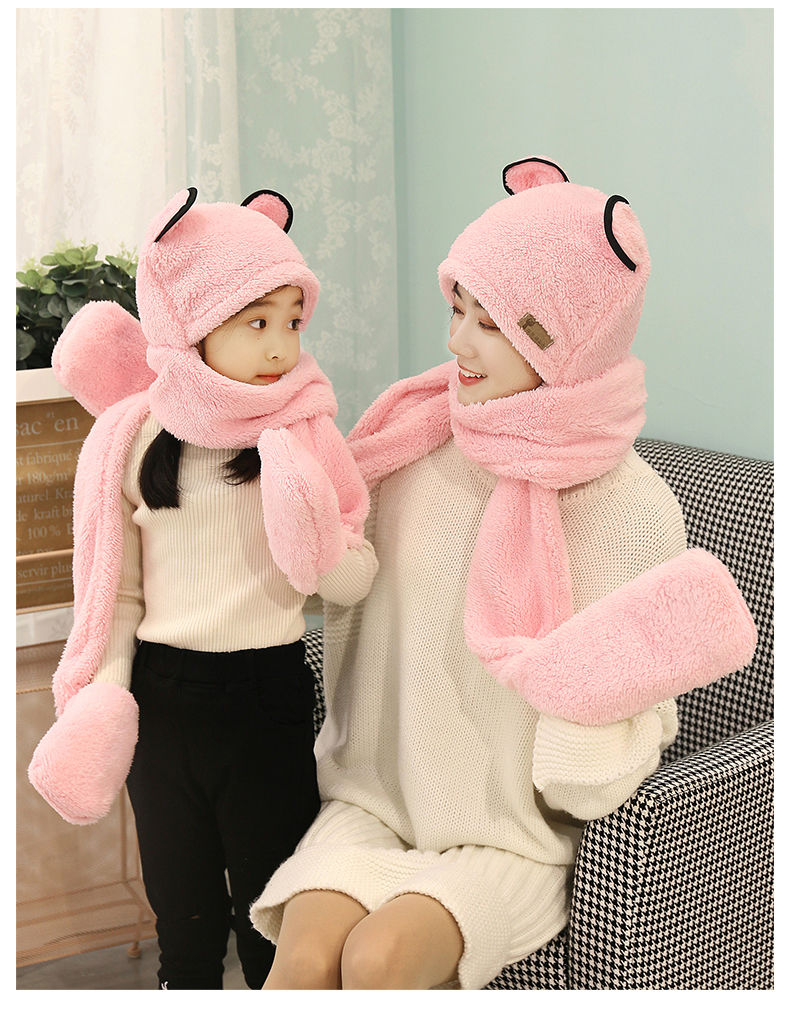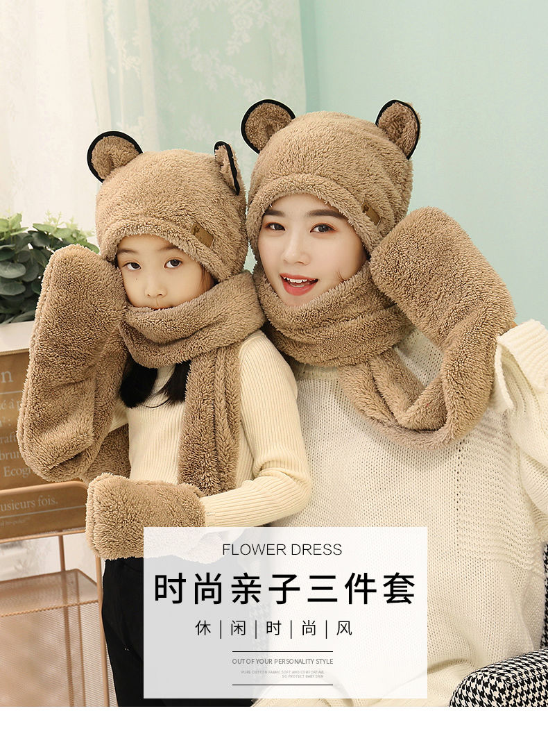 【亲子三件套】女亲子儿童宝宝帽子围巾手套三件一体秋冬保暖加厚