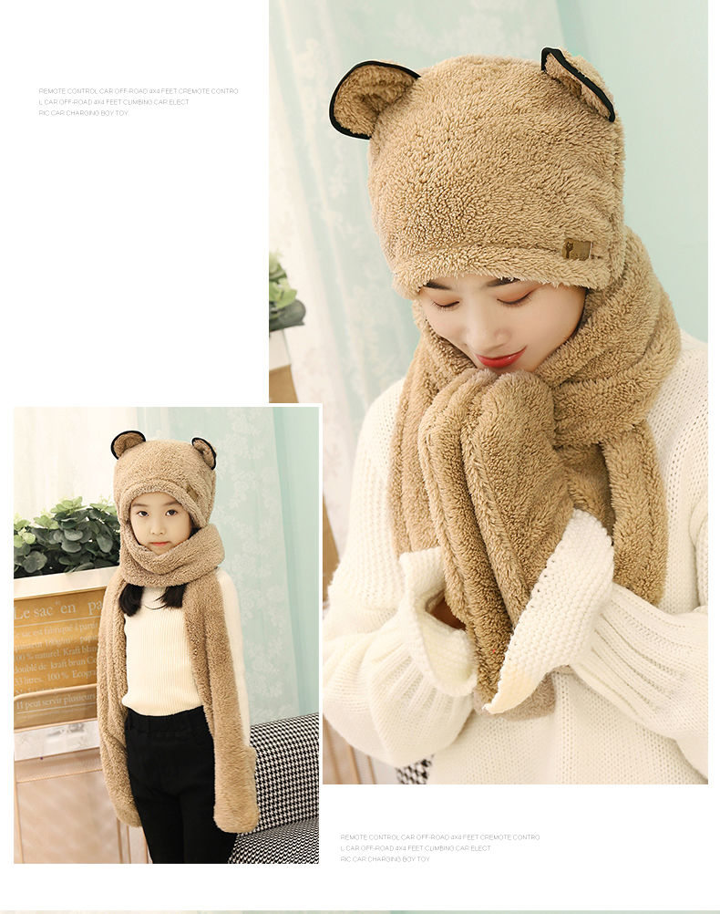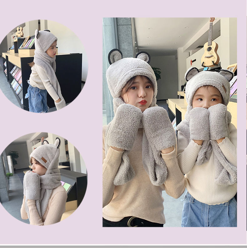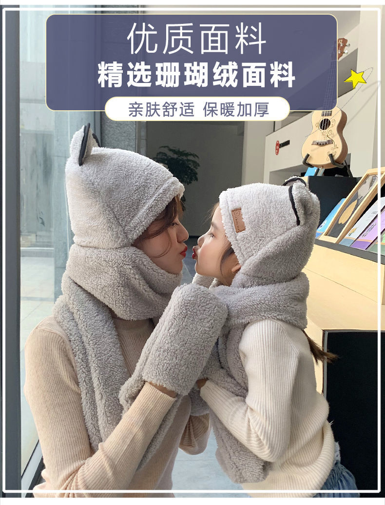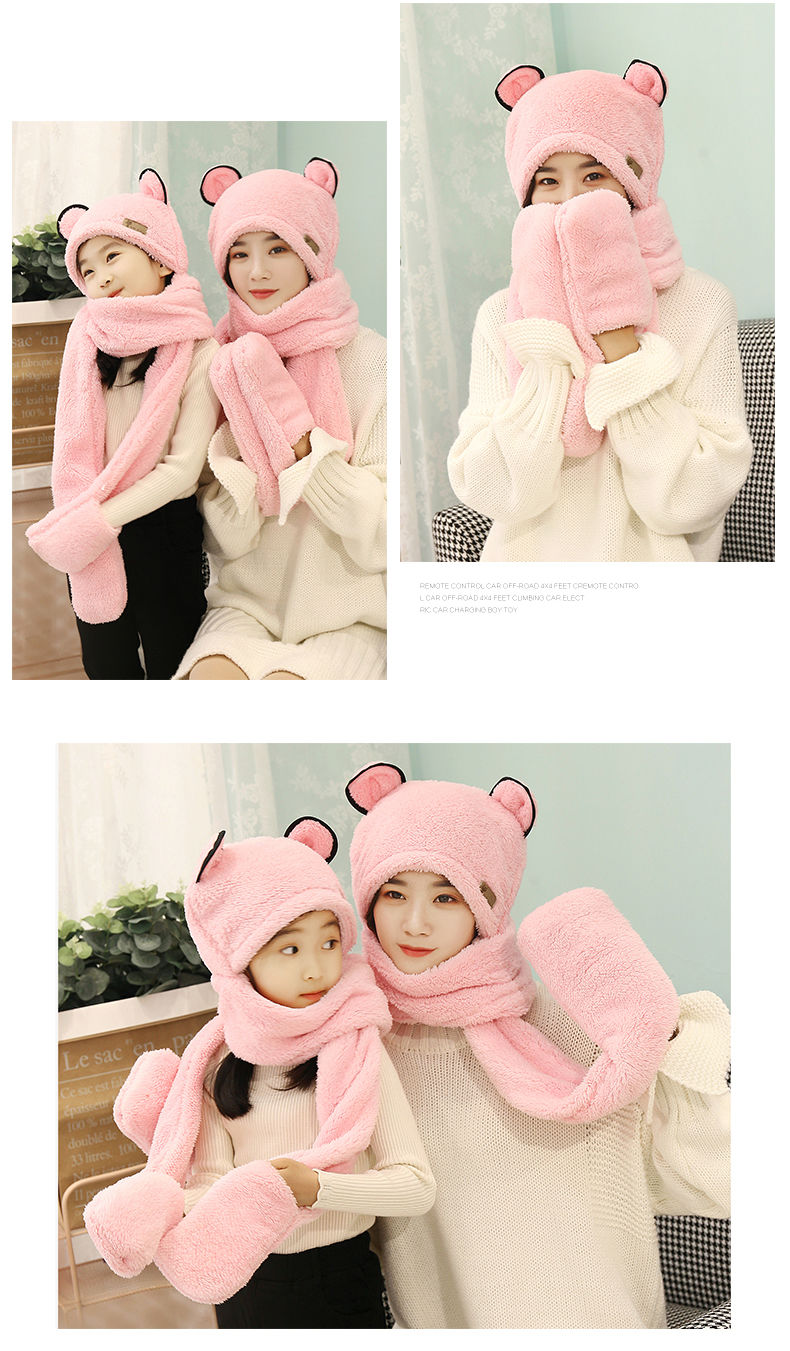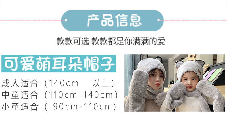 【亲子三件套】女亲子儿童宝宝帽子围巾手套三件一体秋冬保暖加厚