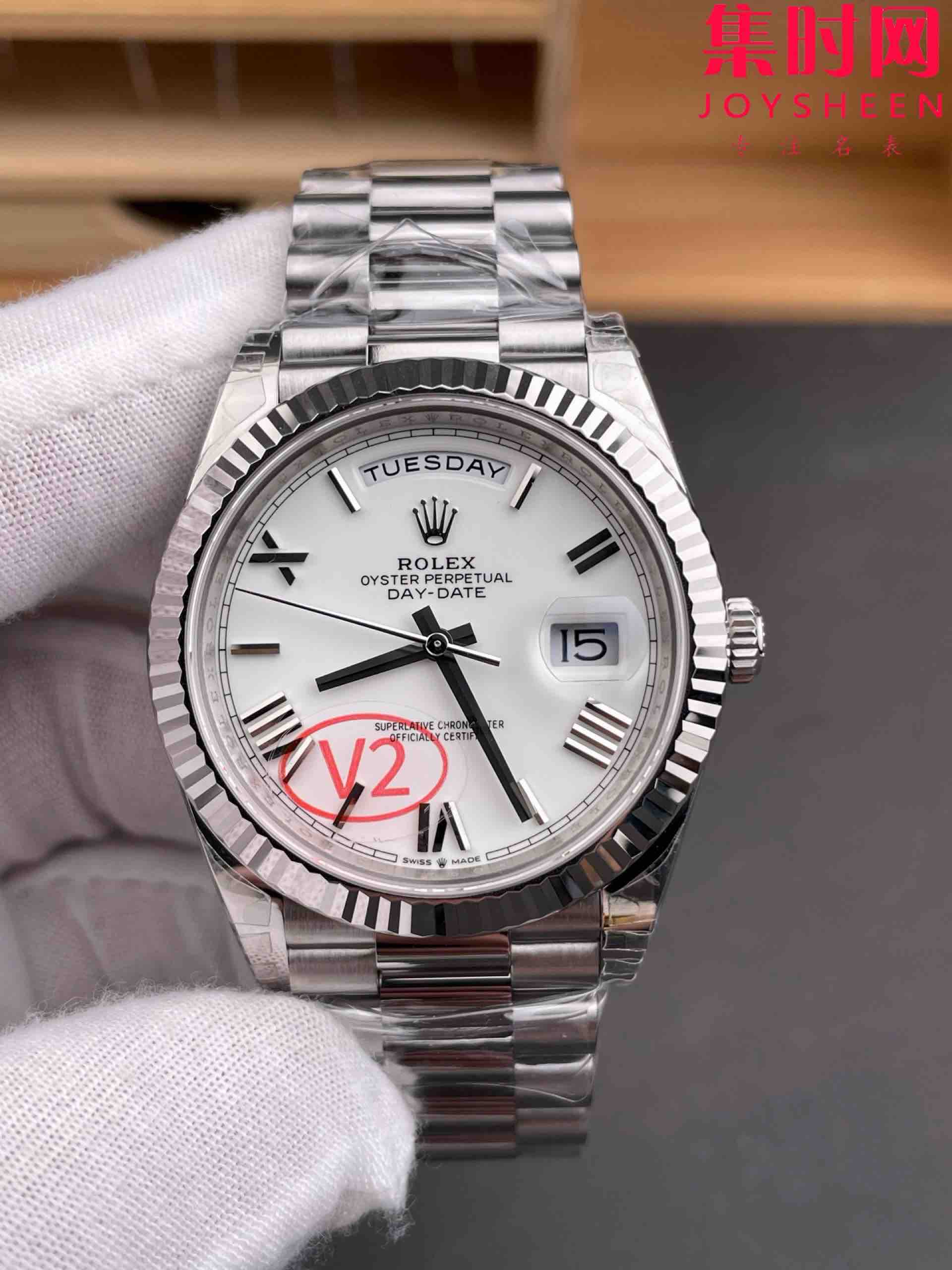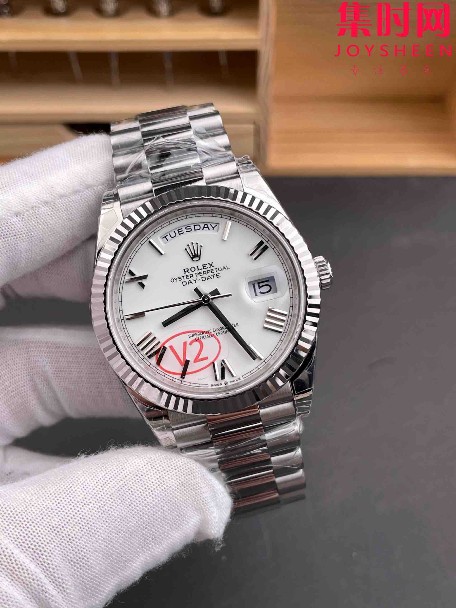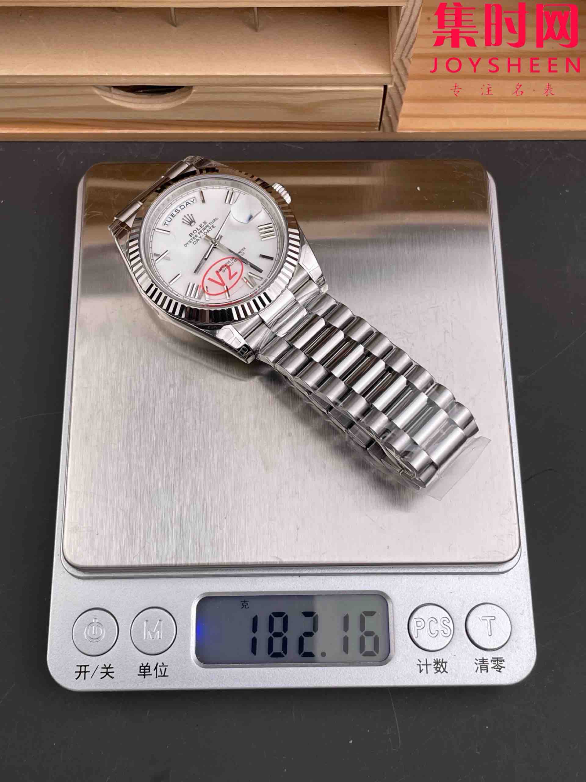 VS配重版 重量180克+ 白罗马DD 劳力士星期日历型系列 V2版 丹东3255机 三珠带 男士腕表 日志40mm
