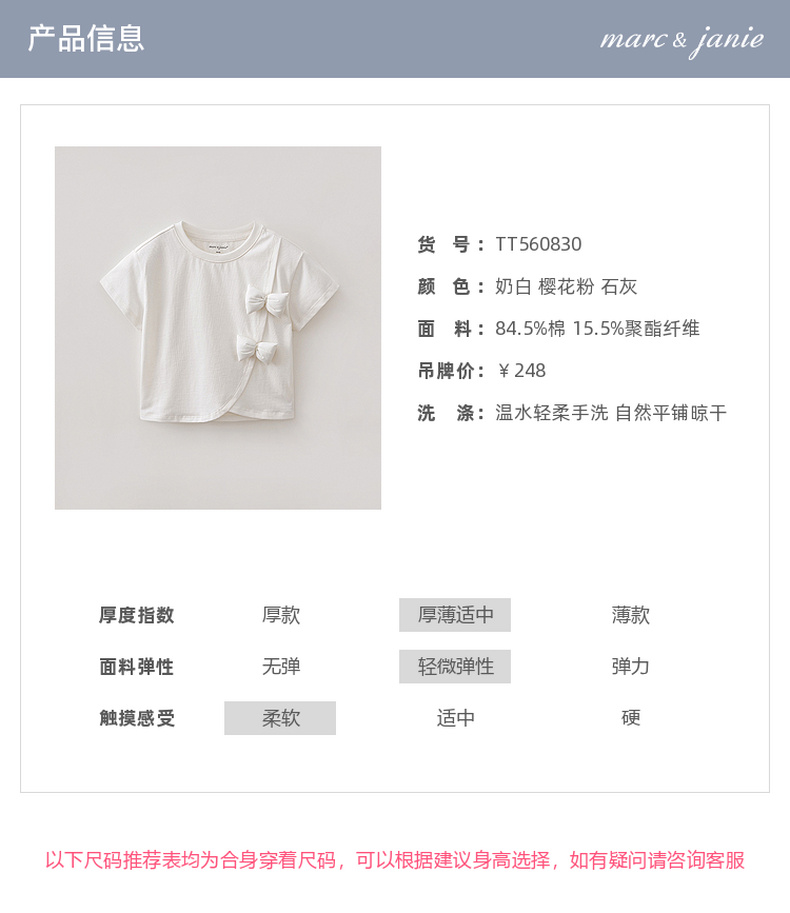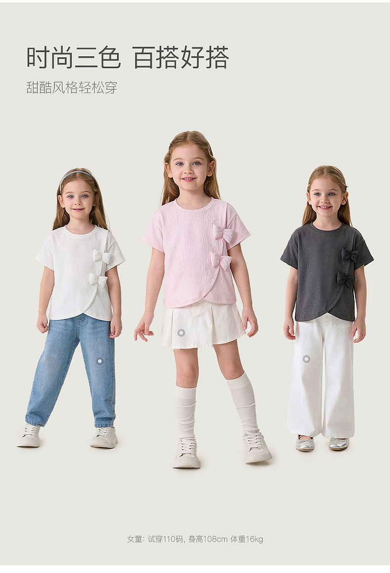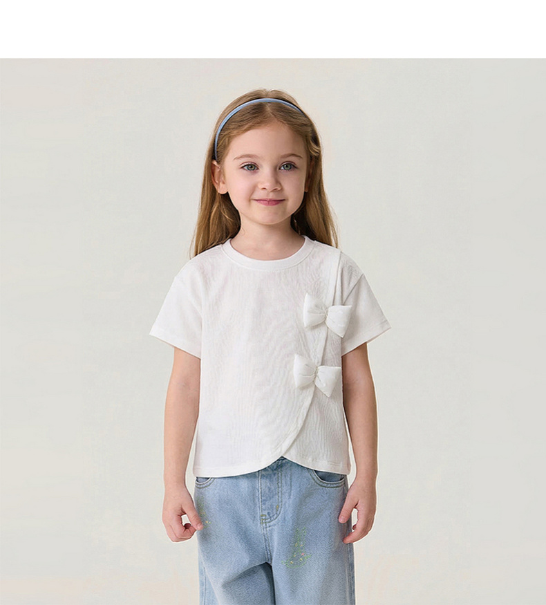 马克珍妮立体蝴蝶结女童凉感透气T2026年夏装新款560830
