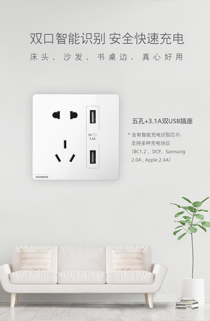 西门子开关插座皓彩亮面白色开关插座面板一站式选购