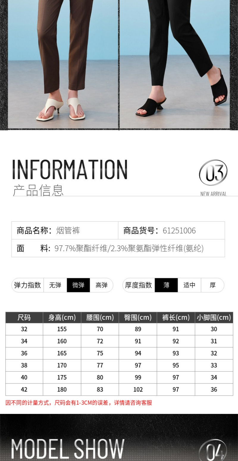 G2000女装SS26商场新款【三防/可机洗/烟管裤】商务通勤九分裤西裤61251006