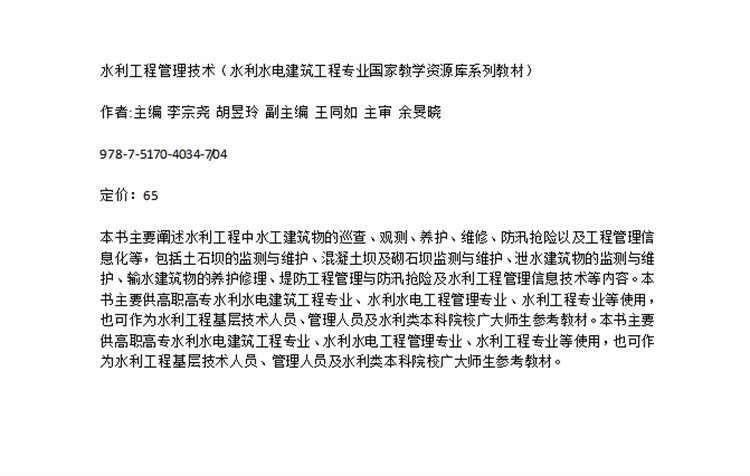 水利工程管理技术(水利水电建筑工程专业国家教学资源库系列教材)