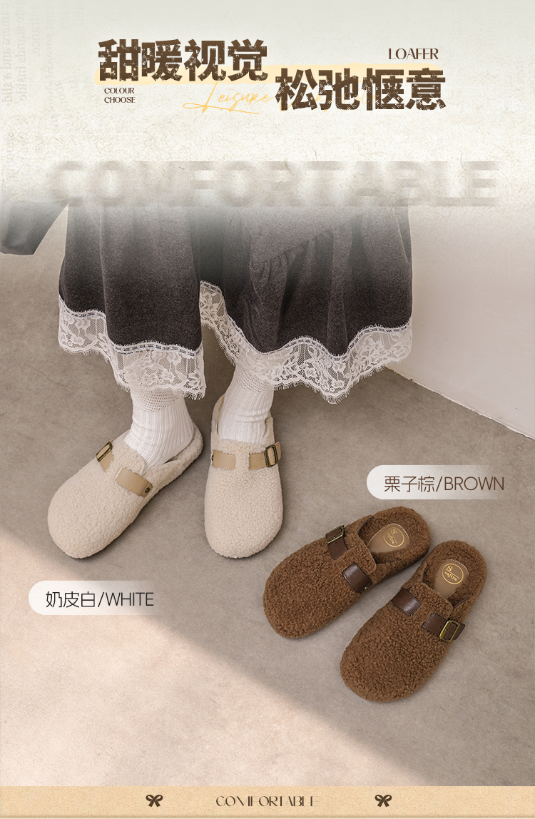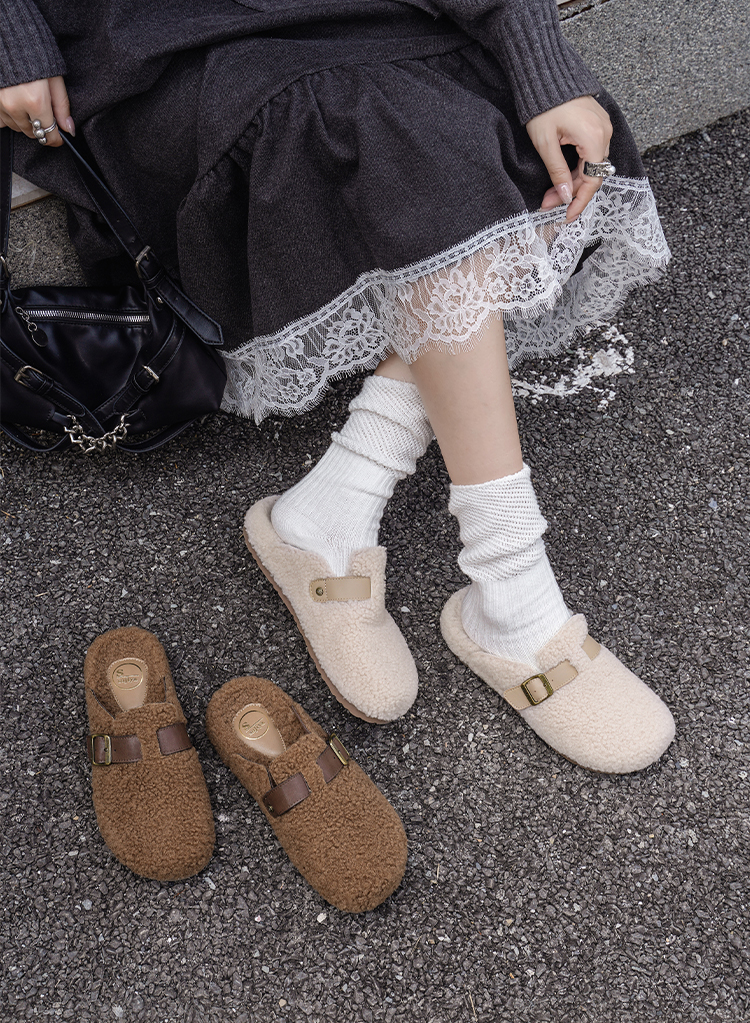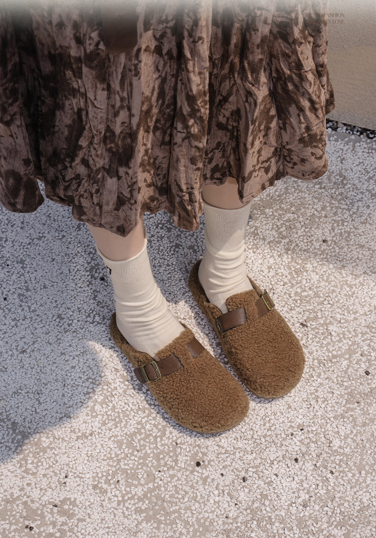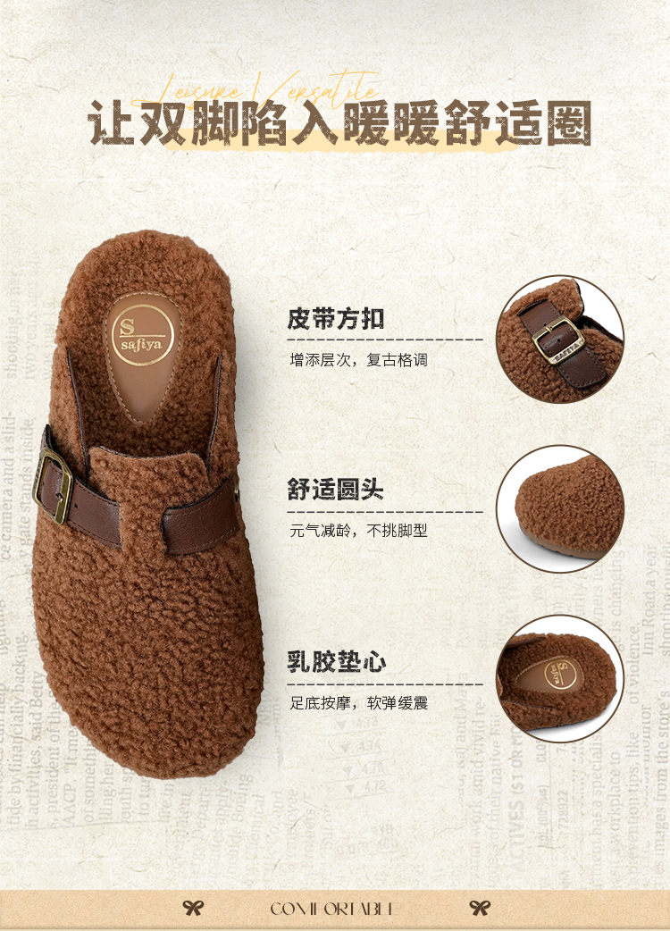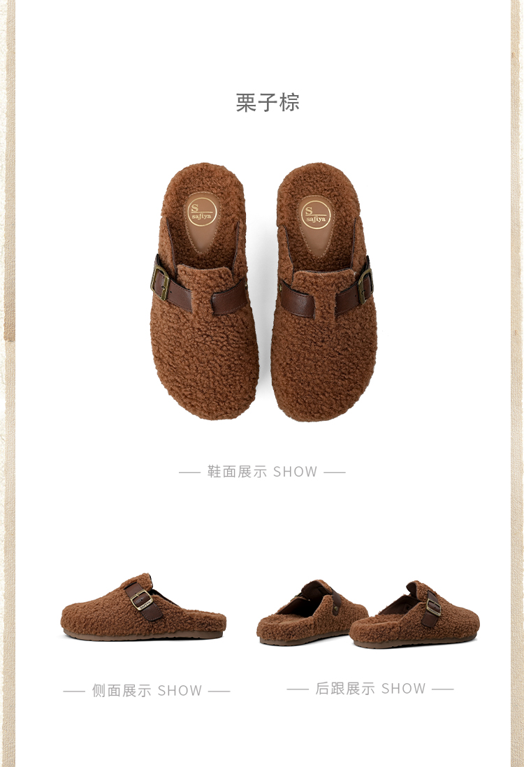 预售|Safiya/索菲娅2025慵懒温暖平底百搭懒人一脚蹬加绒毛毛勃肯鞋SFD4110090