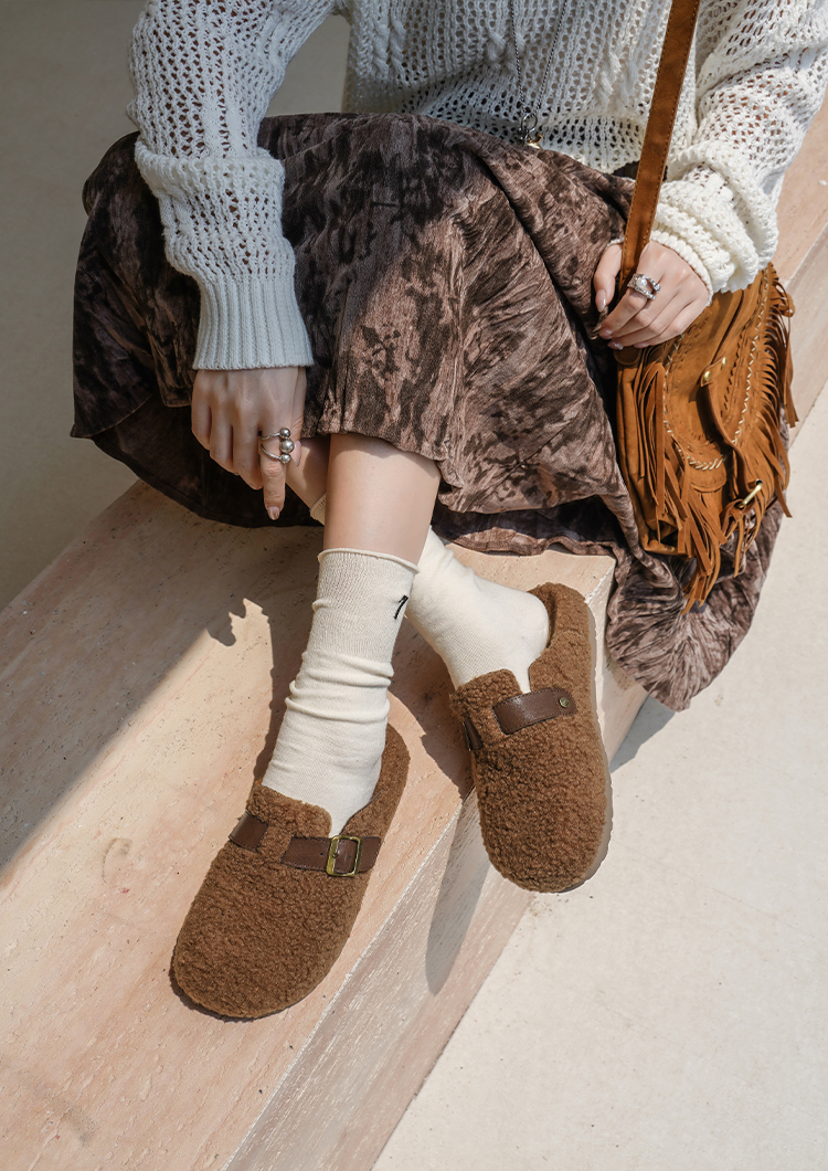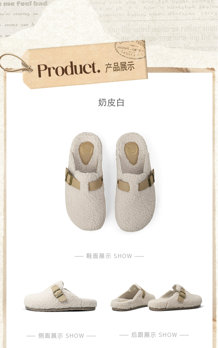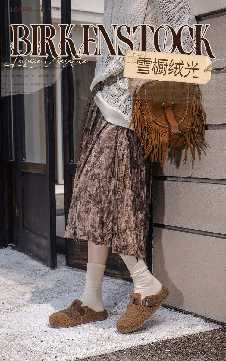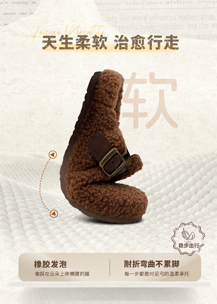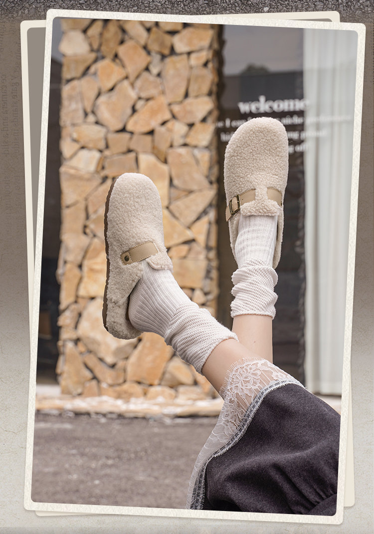 预售|Safiya/索菲娅2025慵懒温暖平底百搭懒人一脚蹬加绒毛毛勃肯鞋SFD4110090