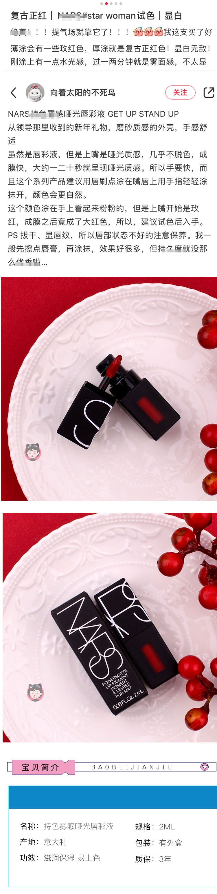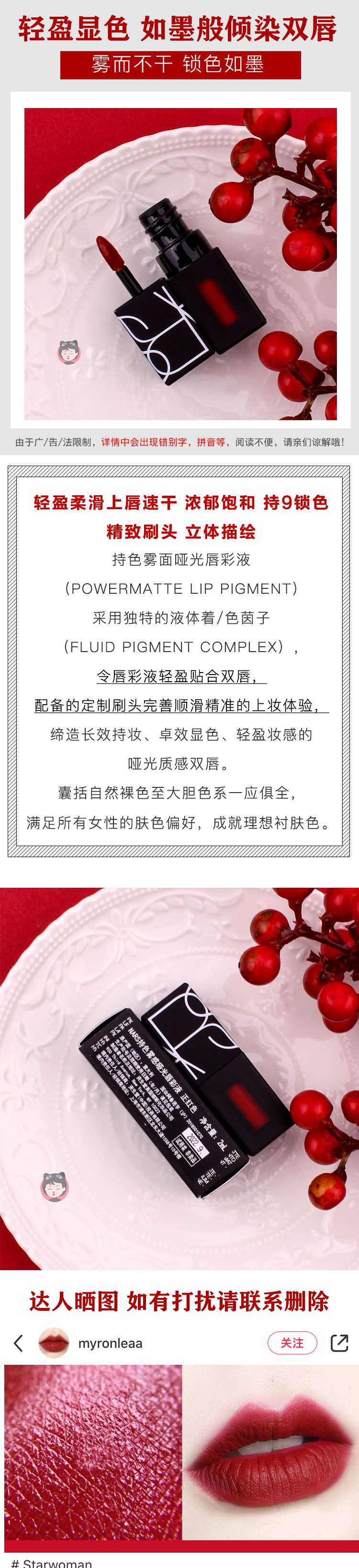 娜斯NARS口红哑光唇彩液持久雾面雾感哑光唇彩液2ml正红色JPY带授权招加盟代理