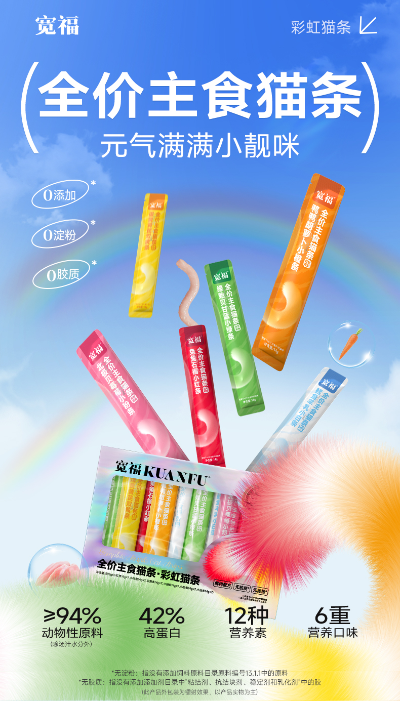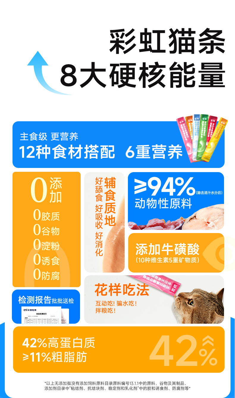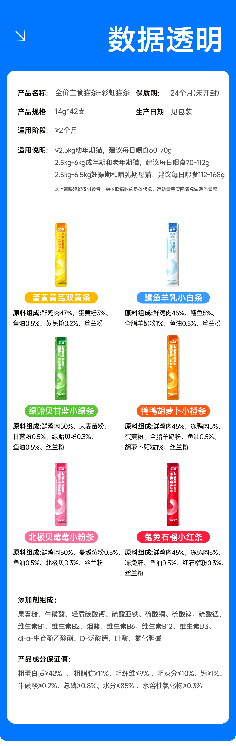【彩虹猫条】 主食猫条一盒尽享6种口味每天不重样 鲜肉配方94%动物性原料 12种食材搭配更营养