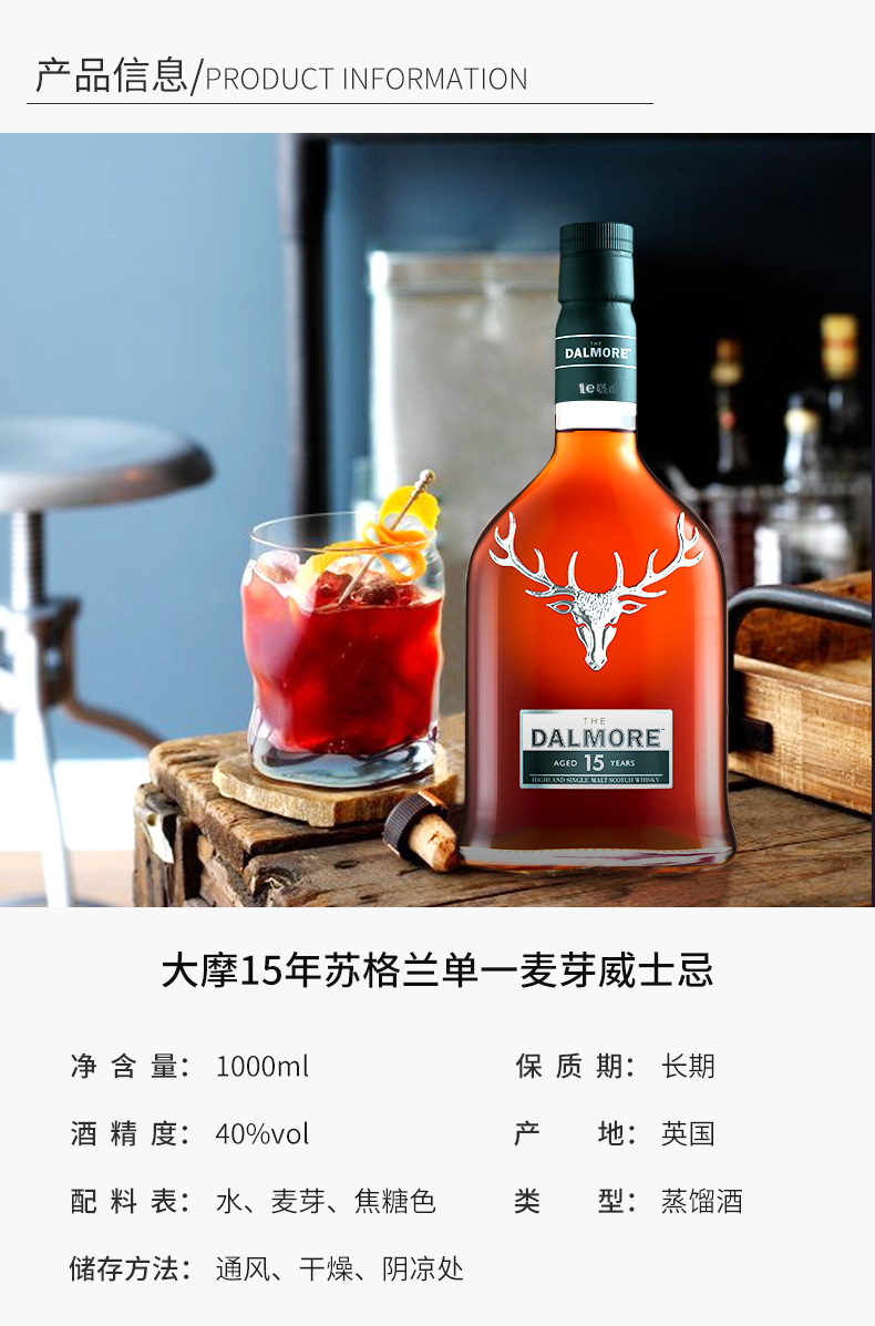 大摩 15年单一麦芽威士忌1L