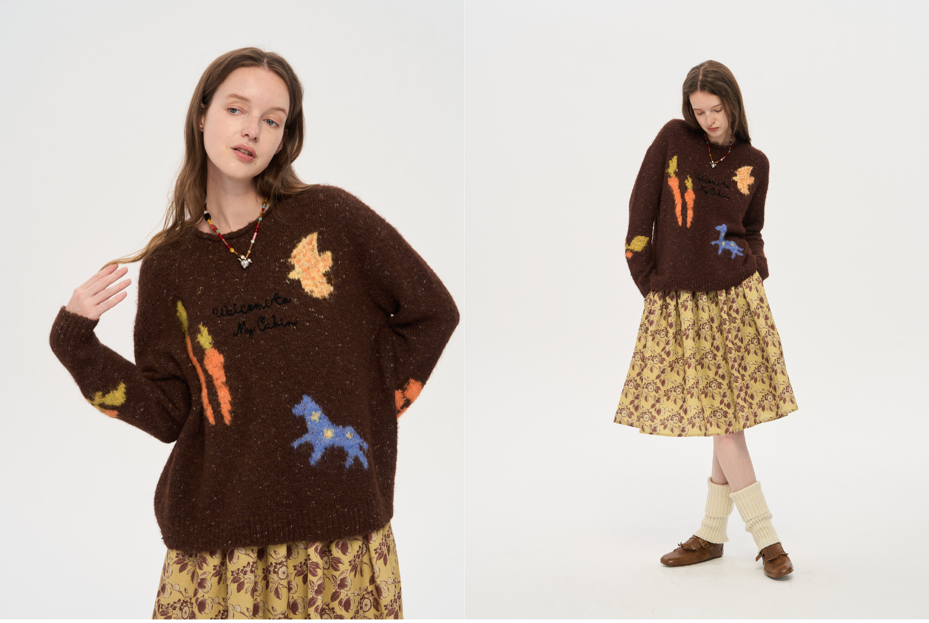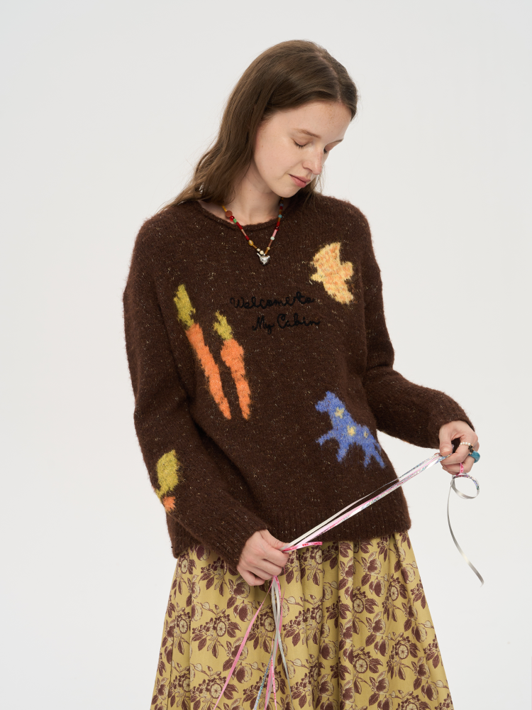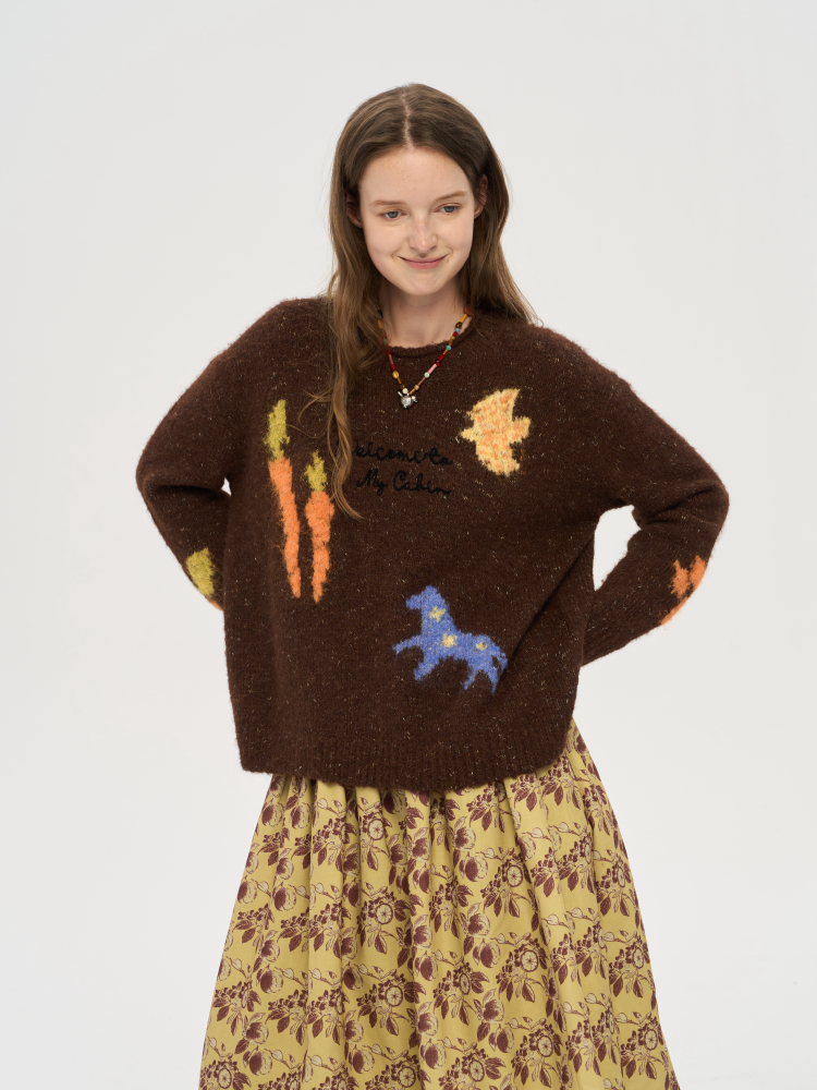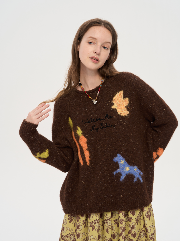 local tag/lt25awk24/波尔农场 温暖彩纱提花刺绣毛衣
