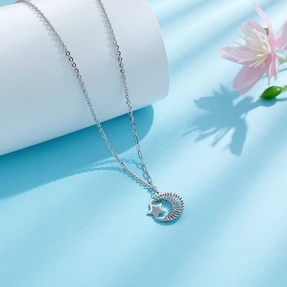 【限时8.8折】【线上铂金馆】PT950 #星月织梦 【精品】铂金镂空AB调节永恒爱恋星月套链(BFPTTL00044)预售产品下单后不退款不退货不换货不补差价)