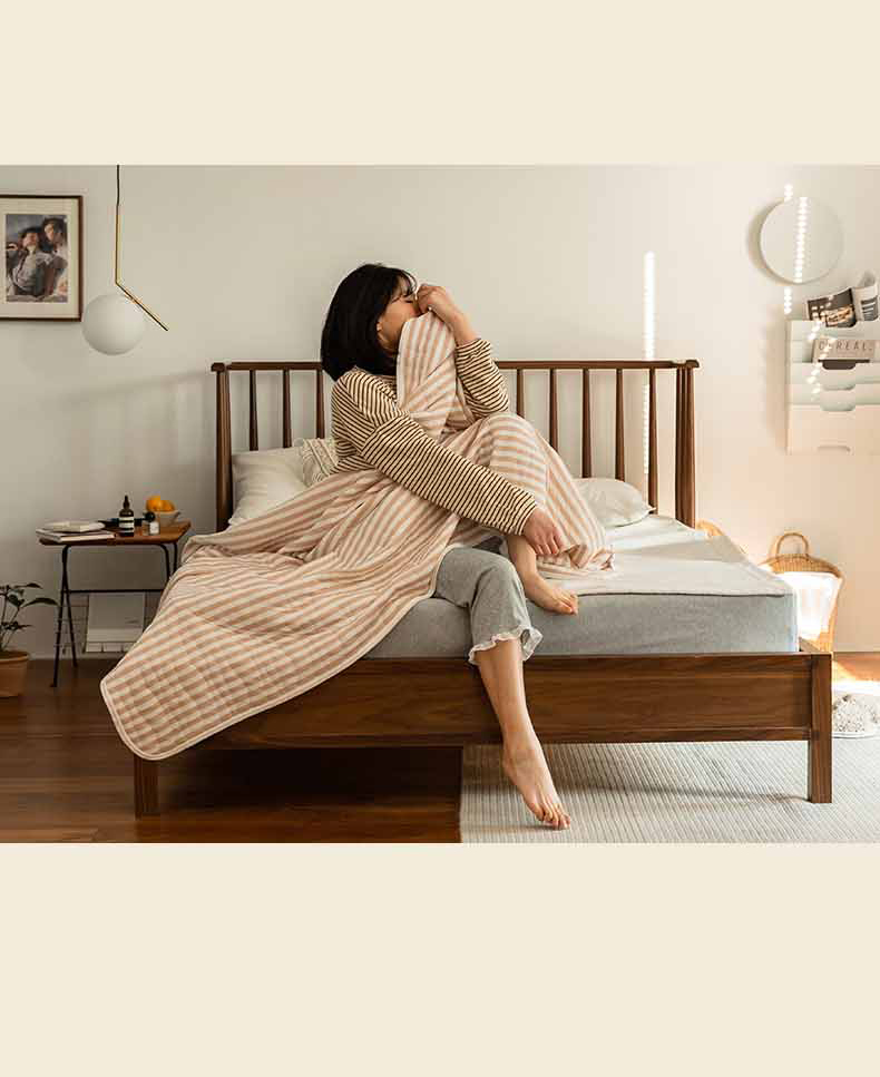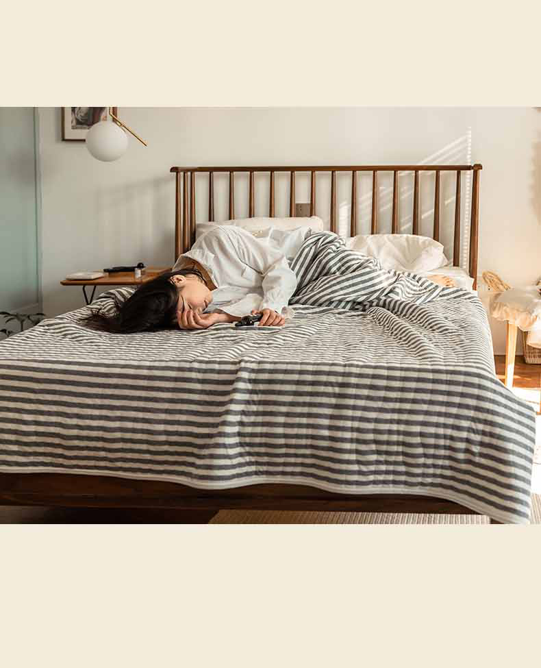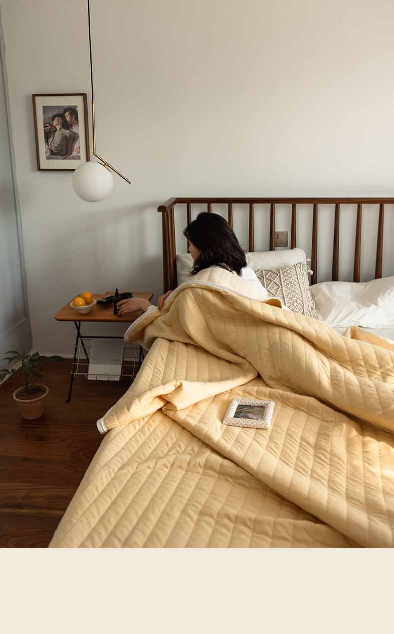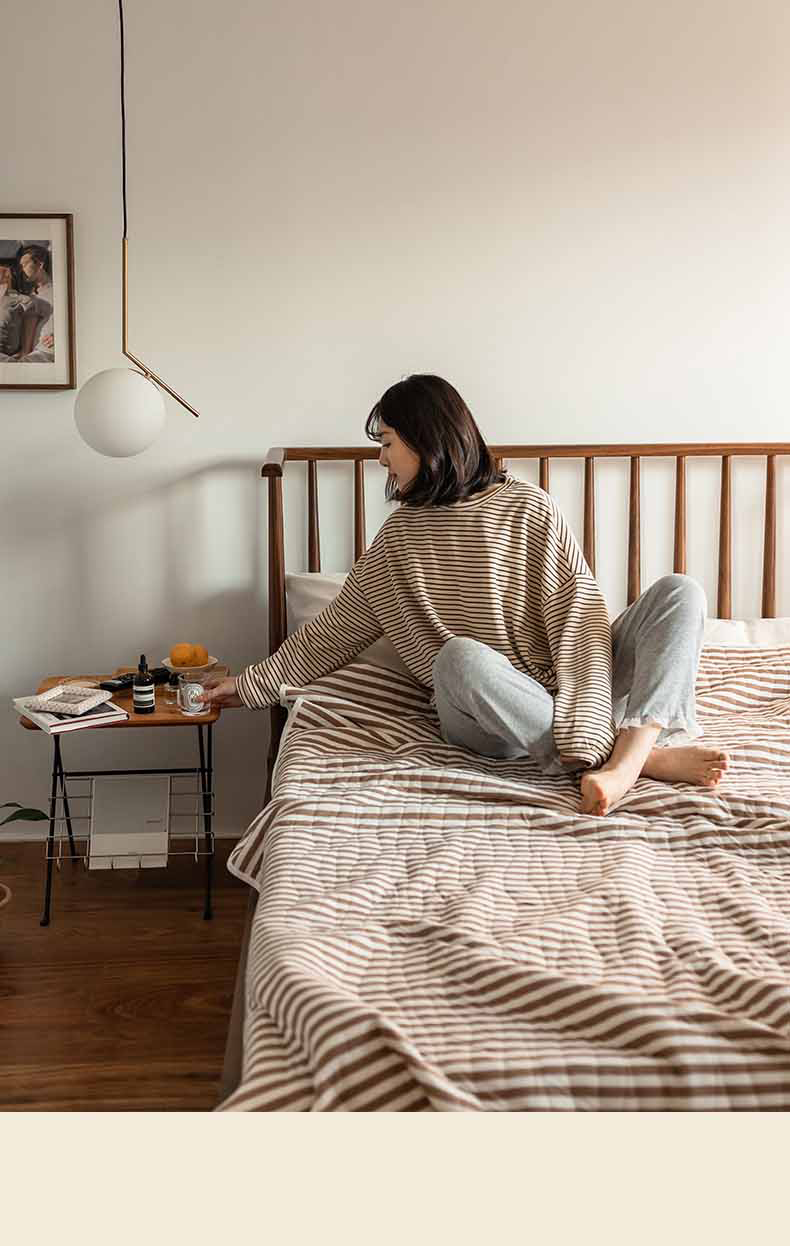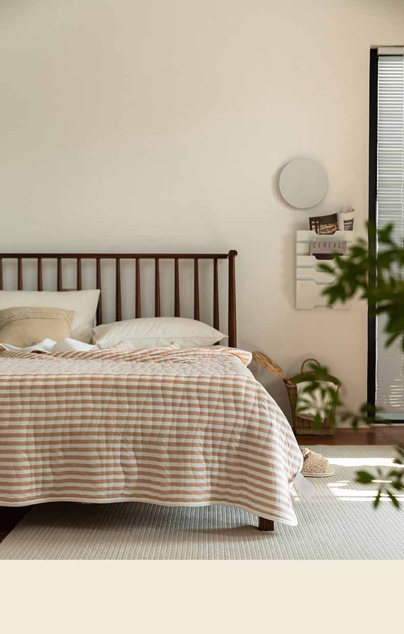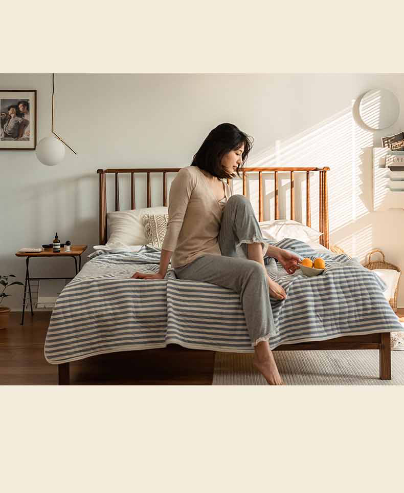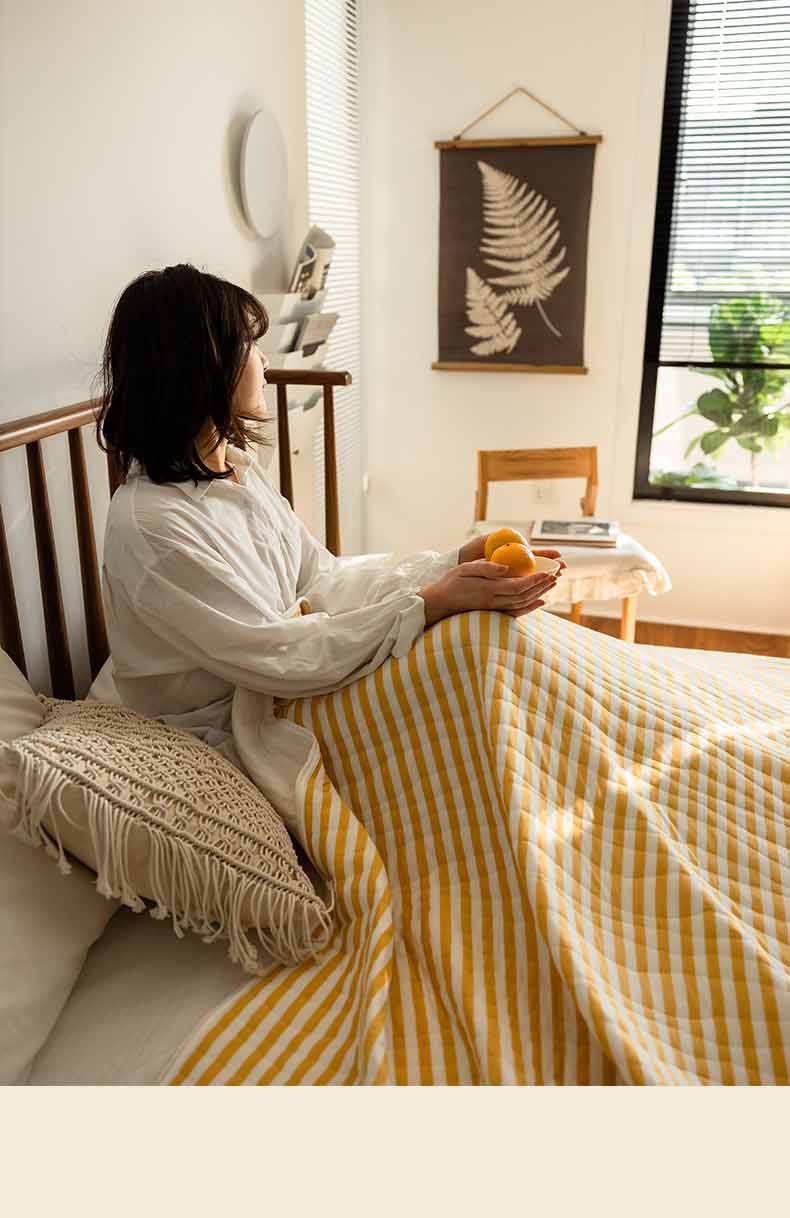 这款夏凉被,采用的全棉条纹汗布,原料选用“百隆”色纺纱,且通过瑞士良好棉花发展协会认证。天然材质,是来自大自然的馈赠。