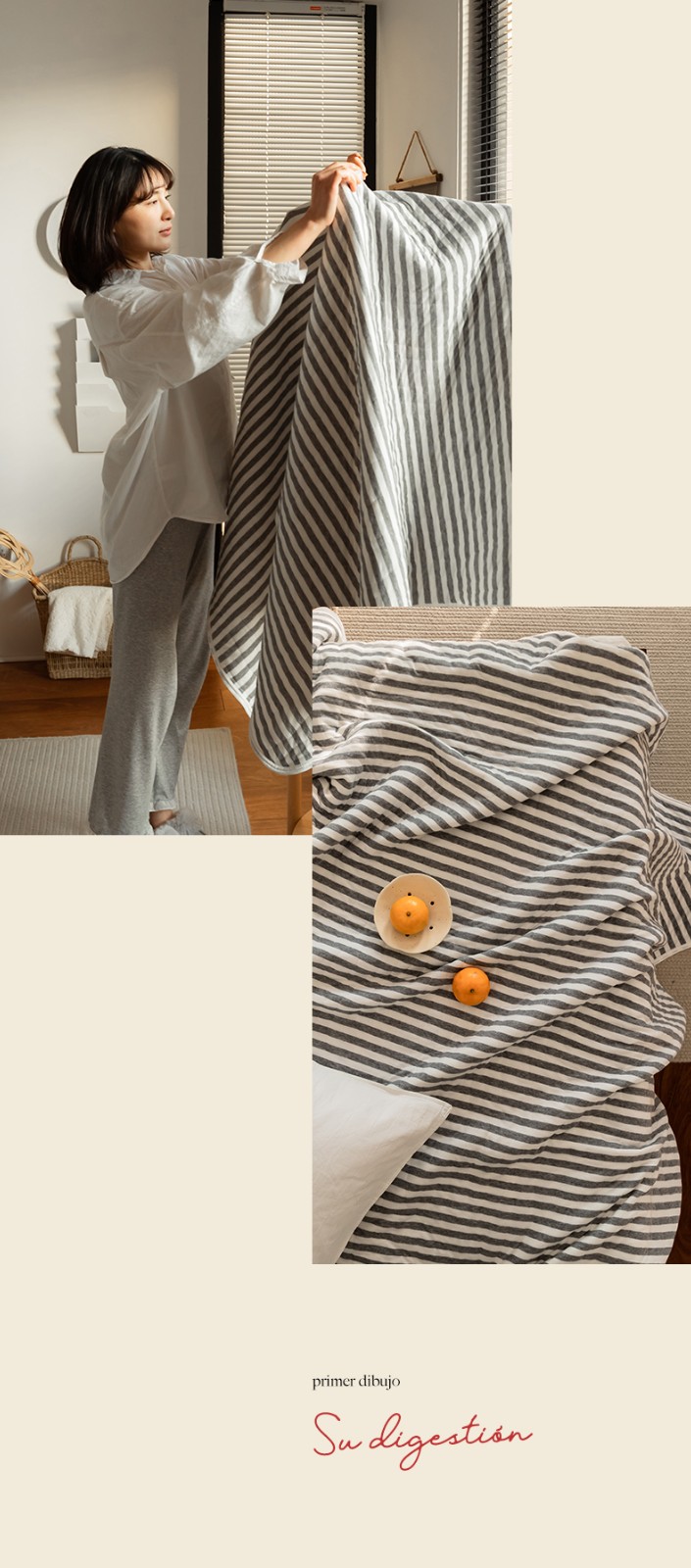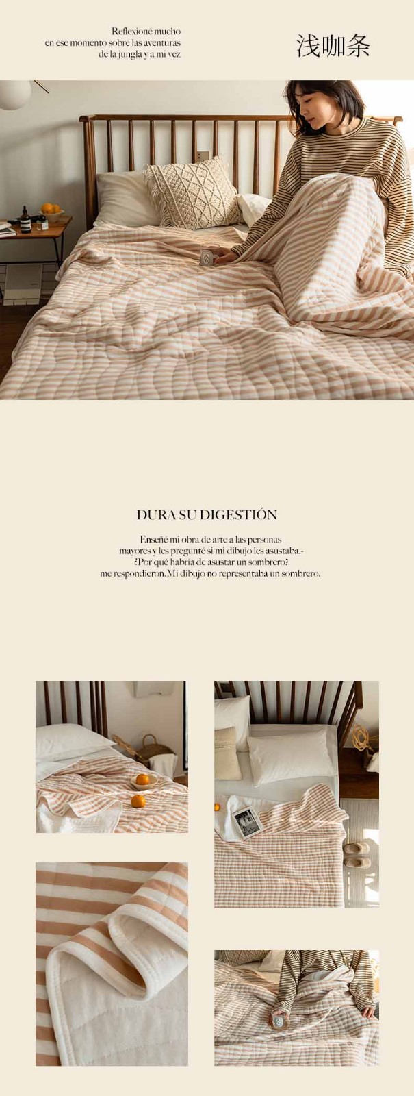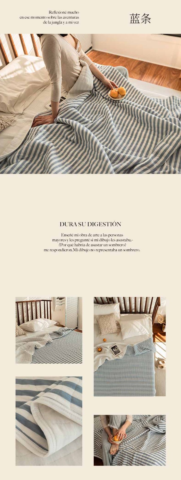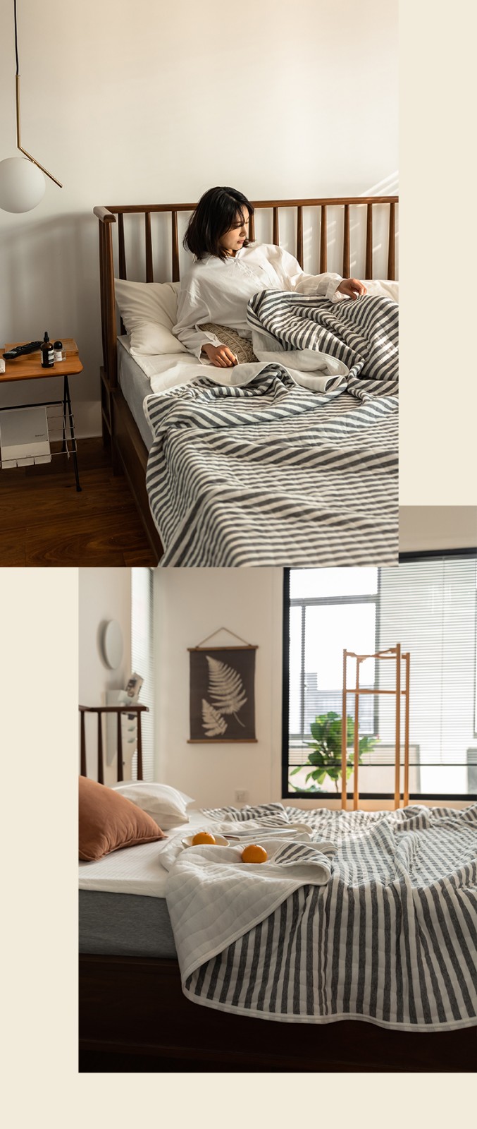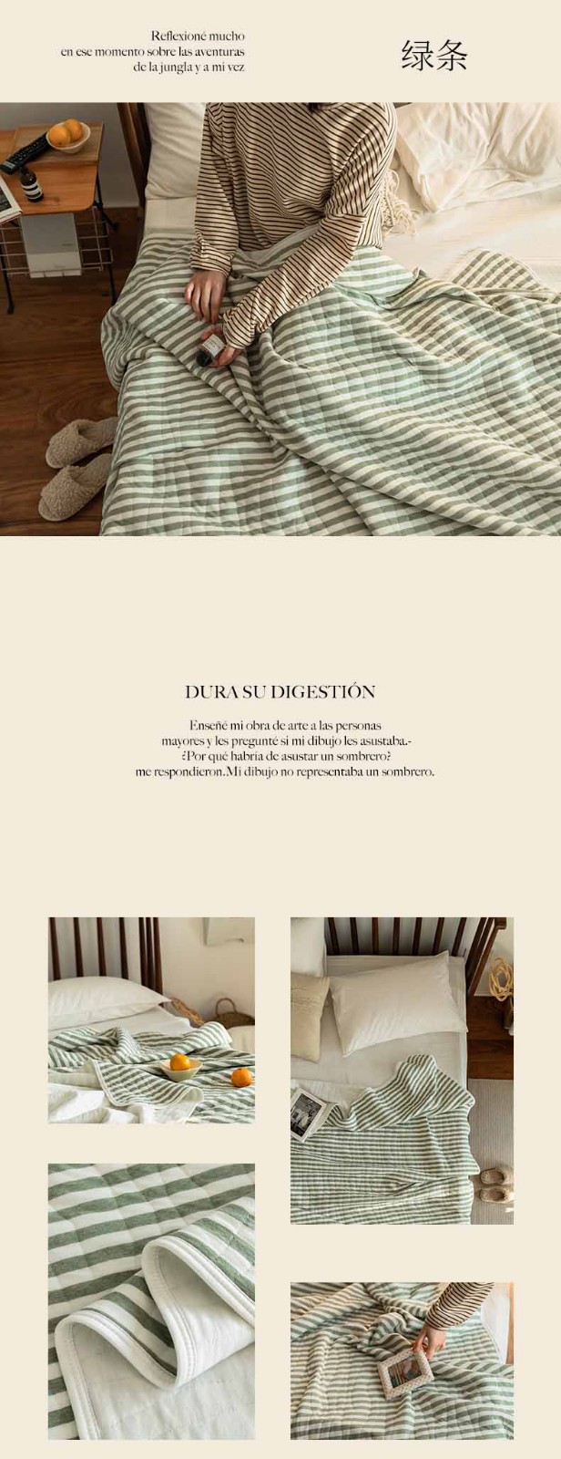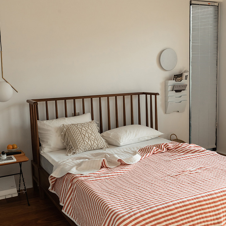 这款夏凉被,采用的全棉条纹汗布,原料选用“百隆”色纺纱,且通过瑞士良好棉花发展协会认证。天然材质,是来自大自然的馈赠。