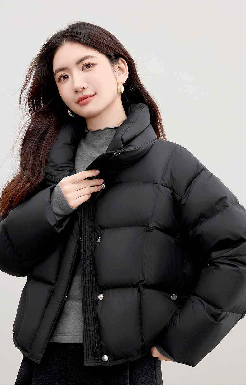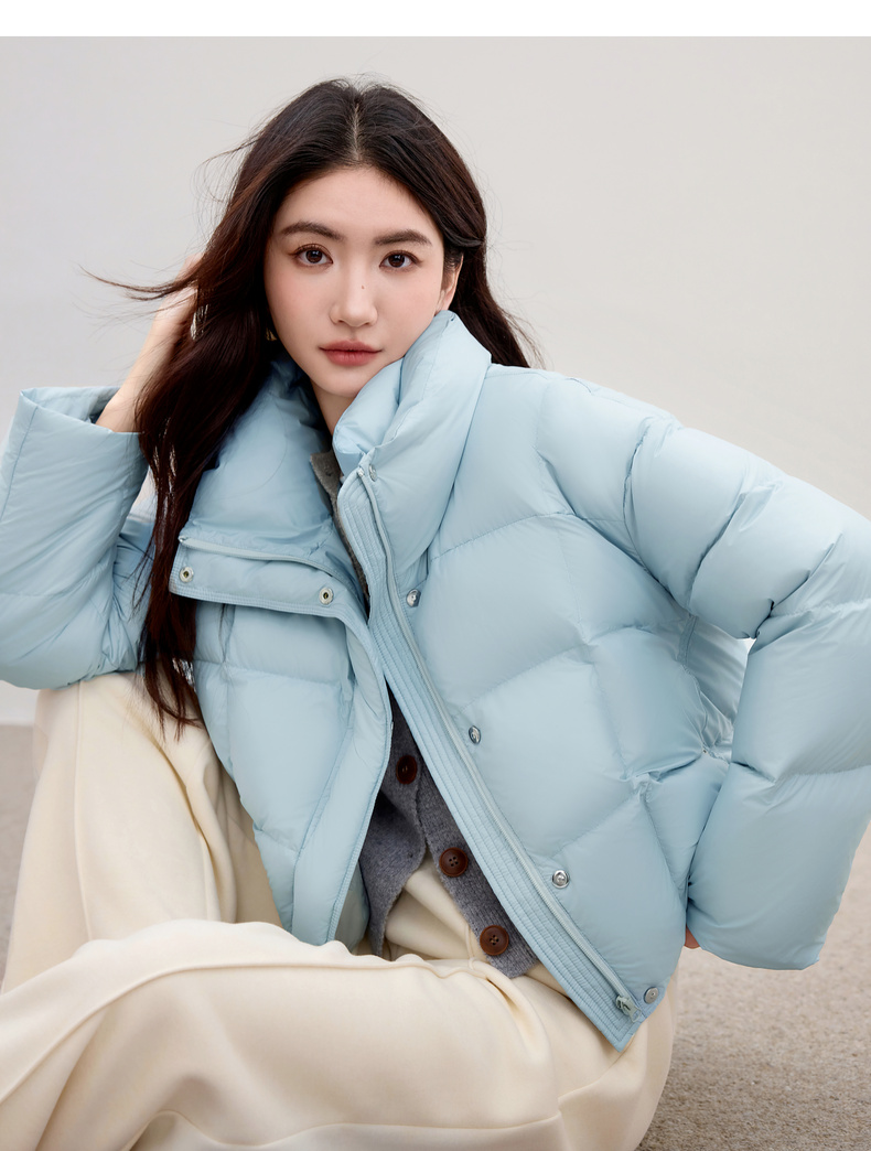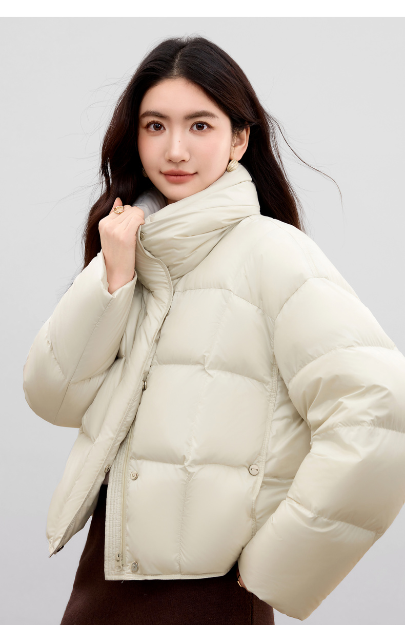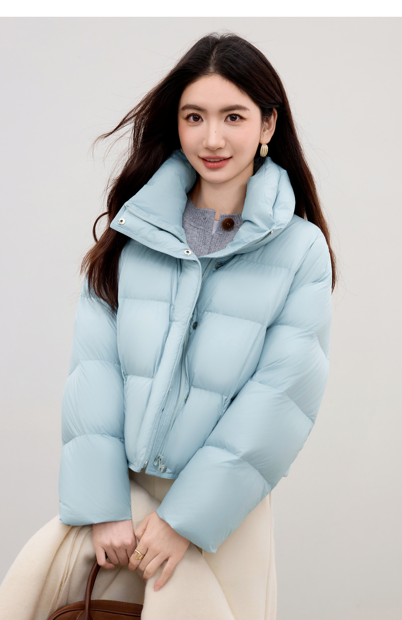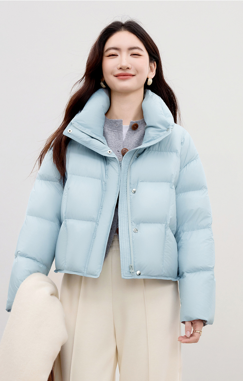【内购】【90%白鸭绒】防风立领O型藏肉不显臃肿落肩袖金属纽扣短款羽绒-W54YC1884