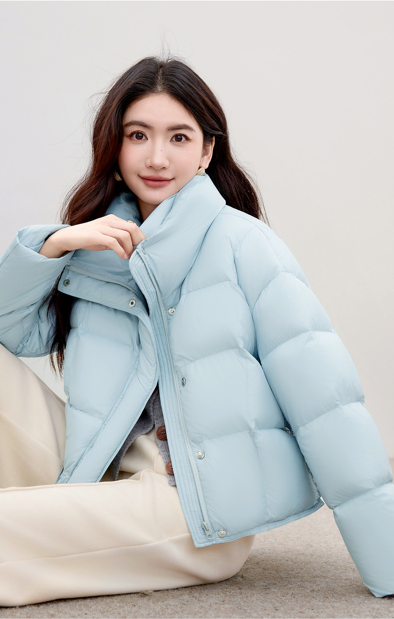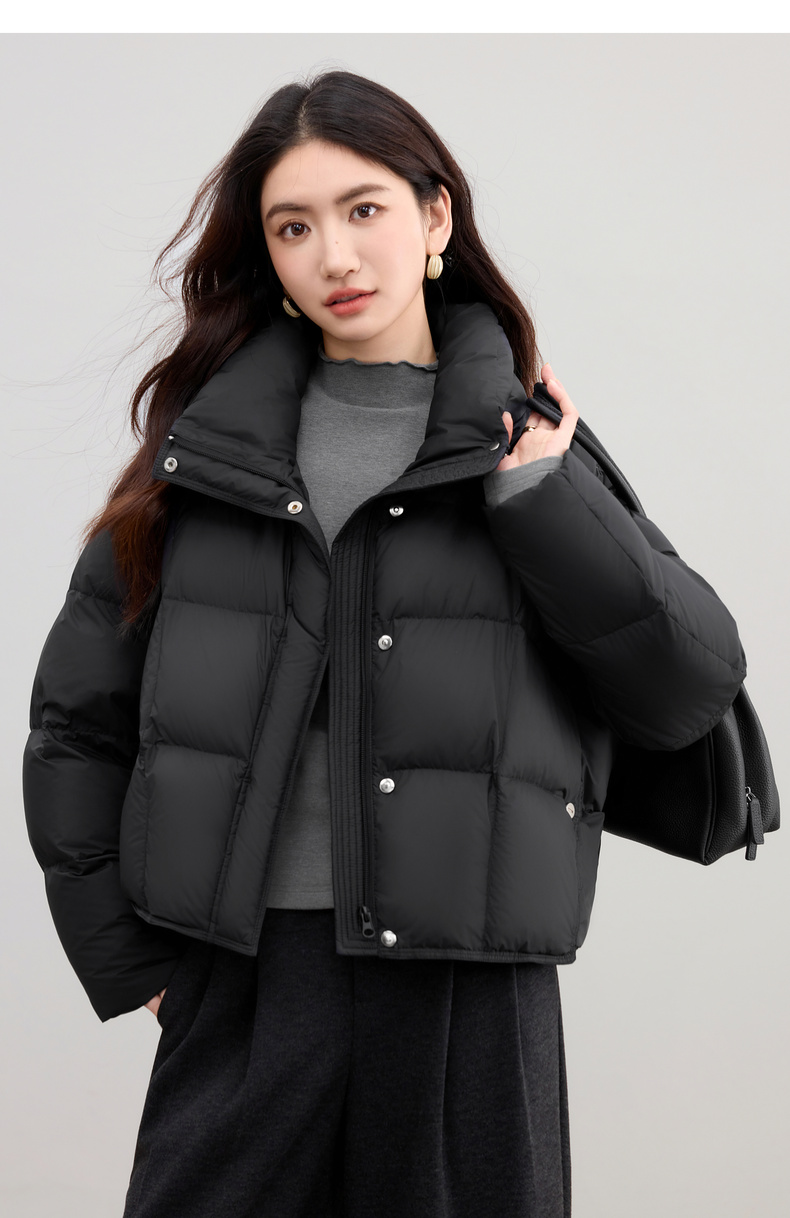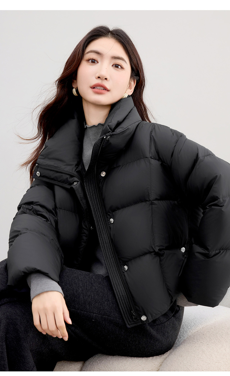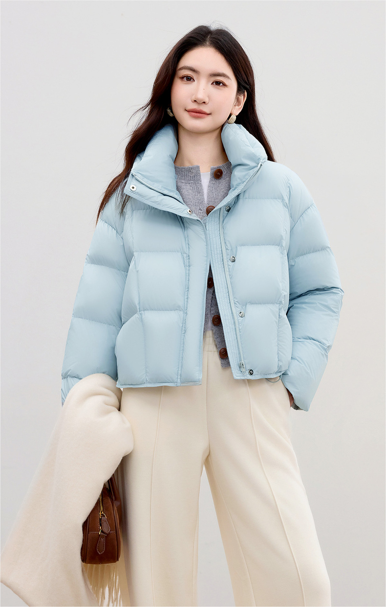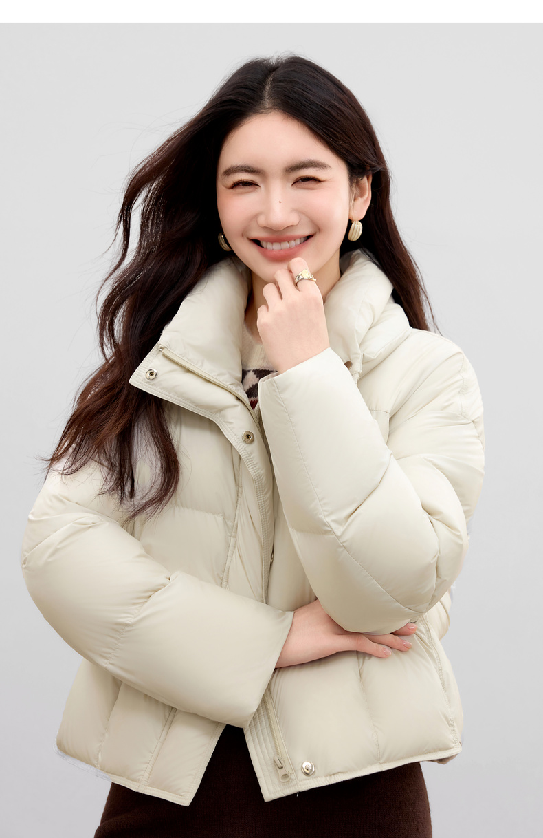 【内购】【90%白鸭绒】防风立领O型藏肉不显臃肿落肩袖金属纽扣短款羽绒-W54YC1884