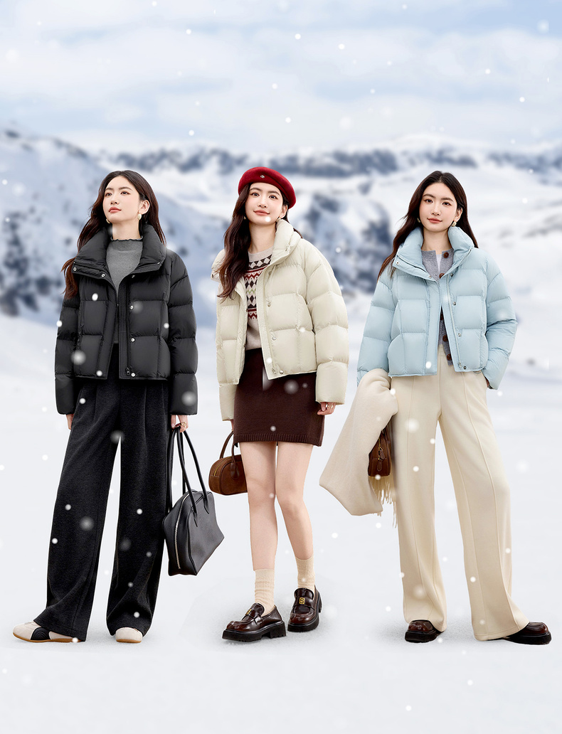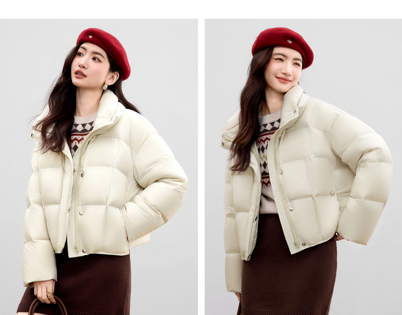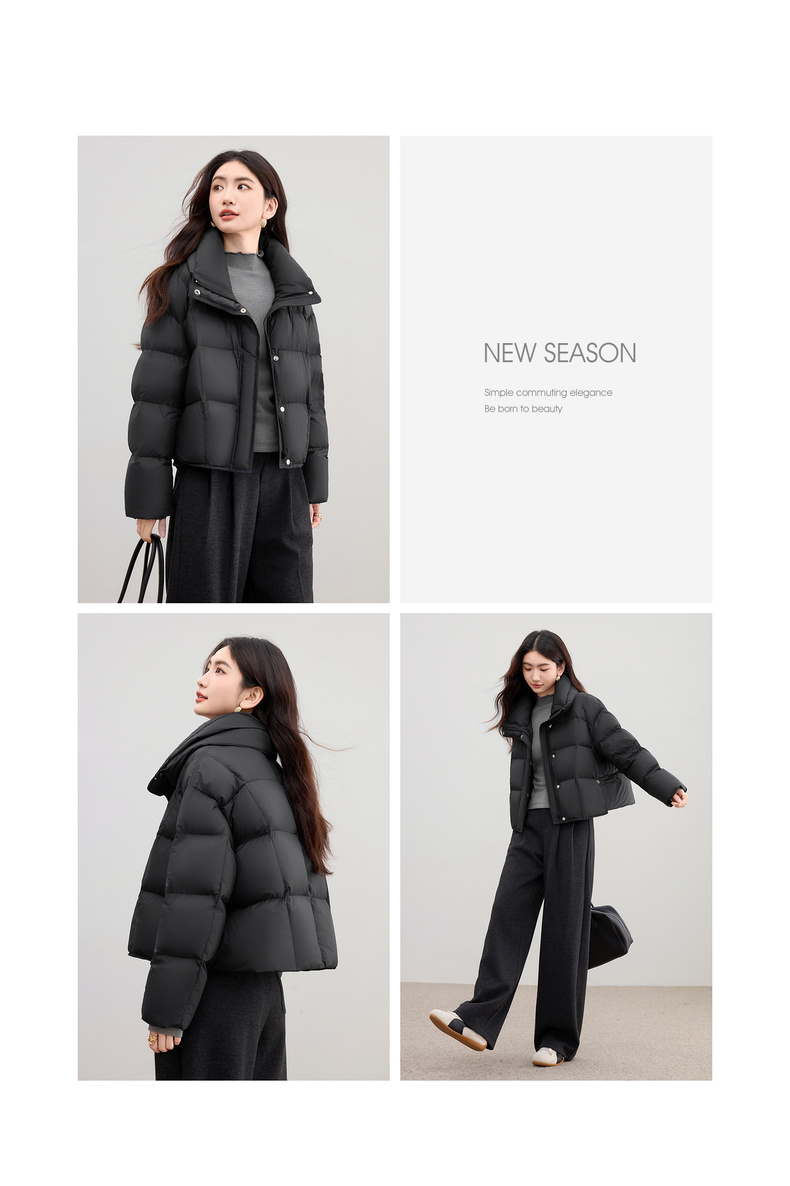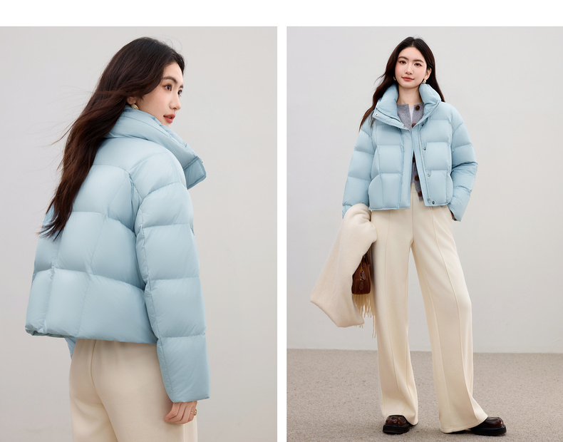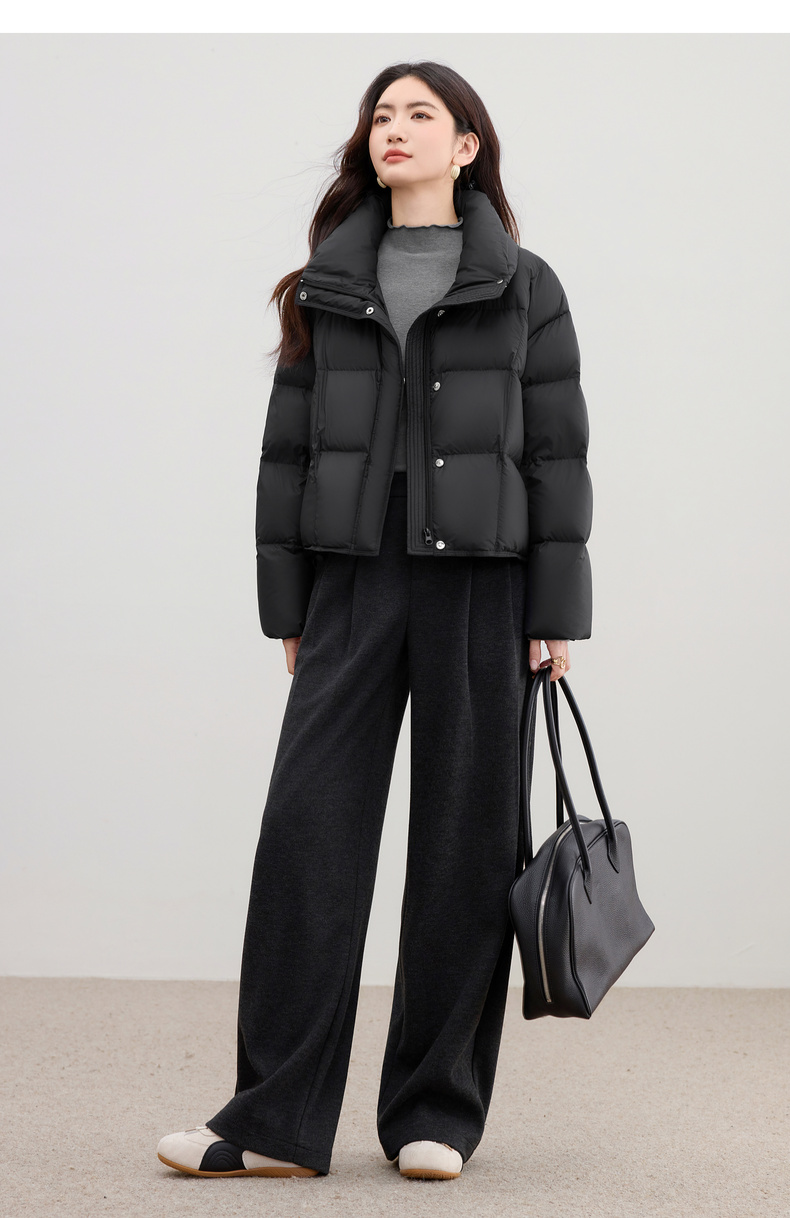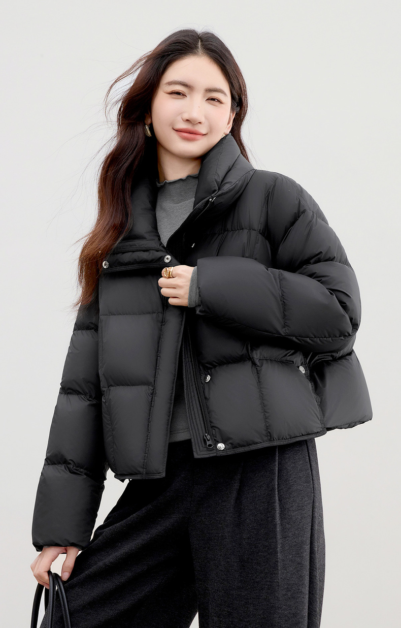 【内购】【90%白鸭绒】防风立领O型藏肉不显臃肿落肩袖金属纽扣短款羽绒-W54YC1884