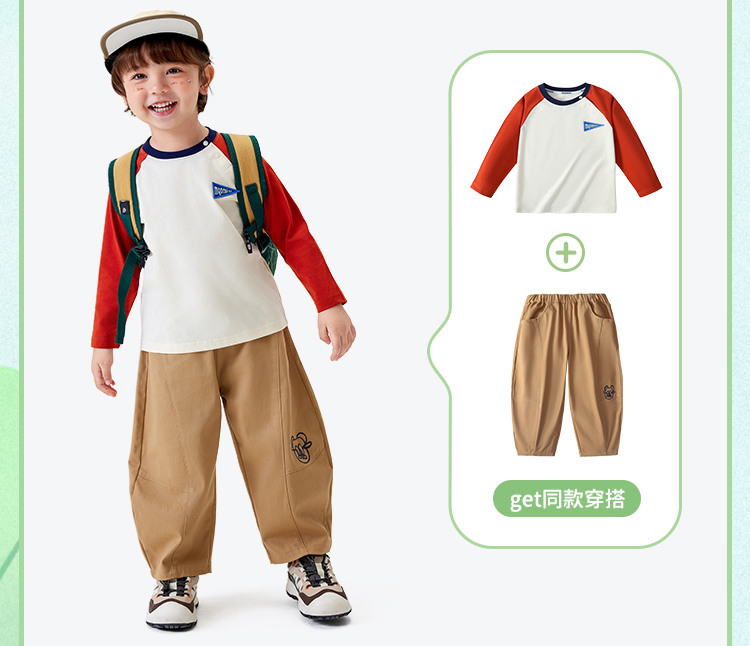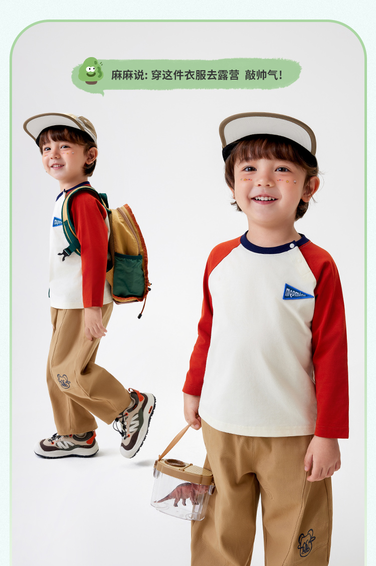【5A抑菌】【90-140】【MQDmini】男童春秋长袖T恤圆领插肩袖上衣