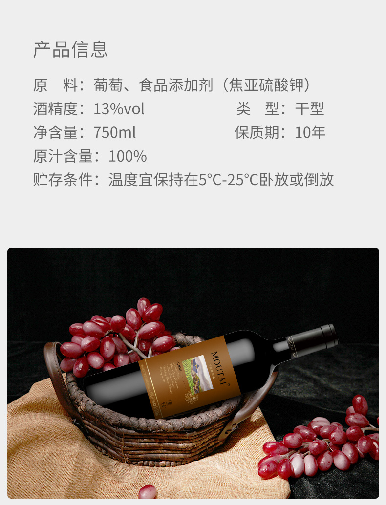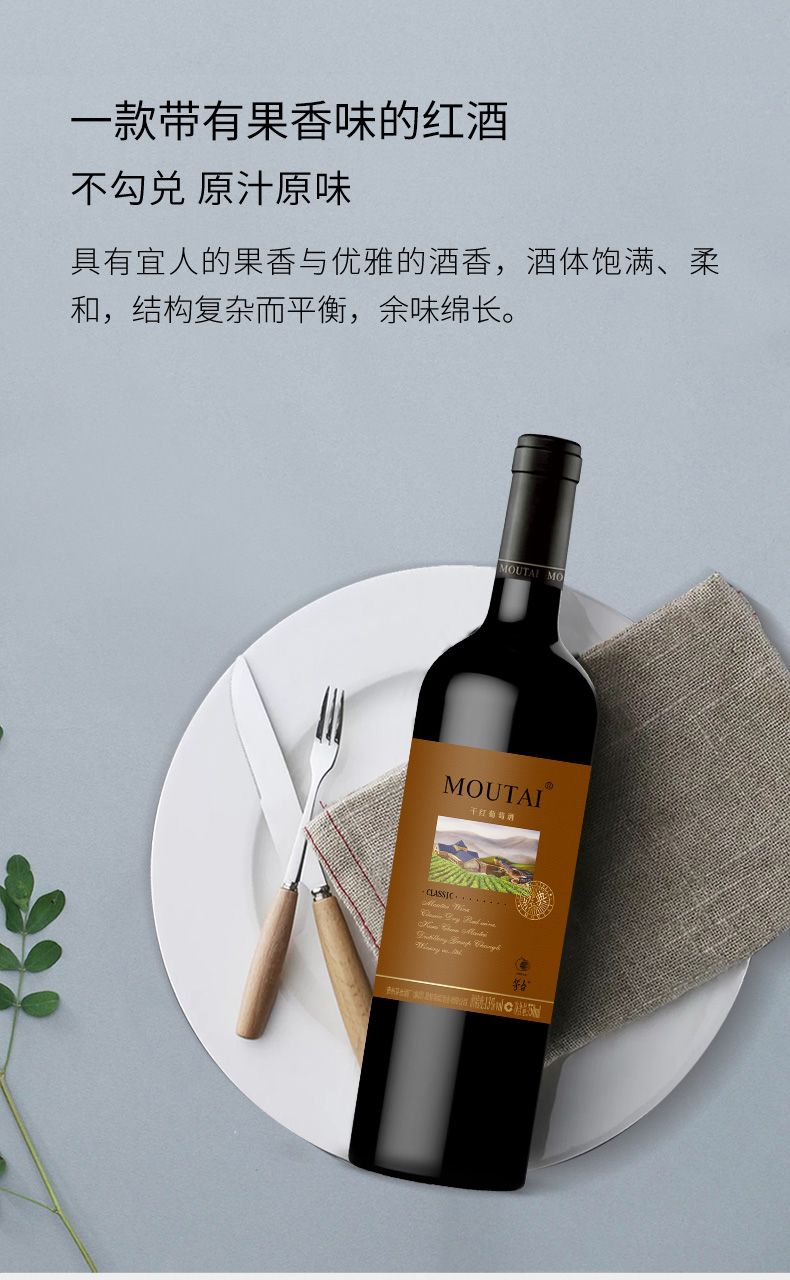 茅台经典棕标干红葡萄酒 750ML/瓶13度