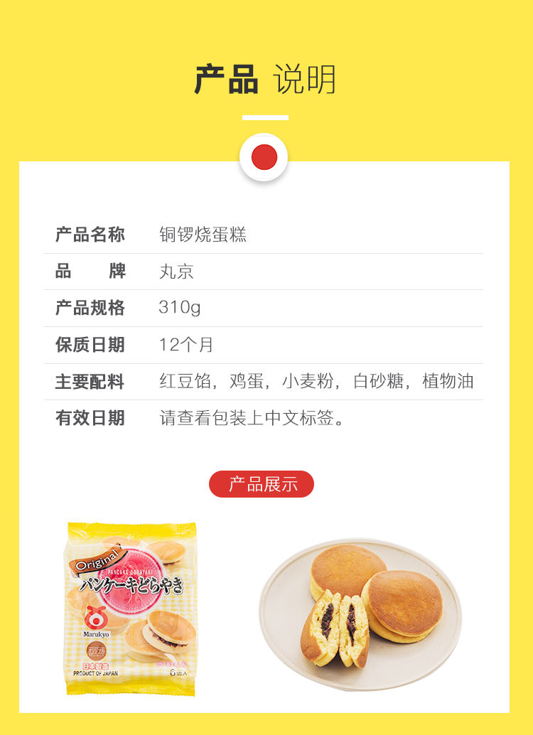 日本丸京铜锣烧蛋糕/抹茶味铜锣烧蛋糕310g 细腻松软醇香浓郁 058249/058583