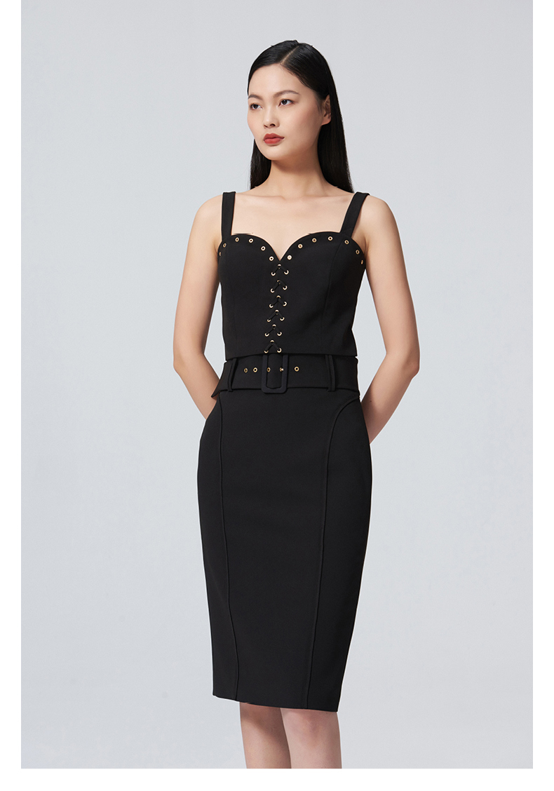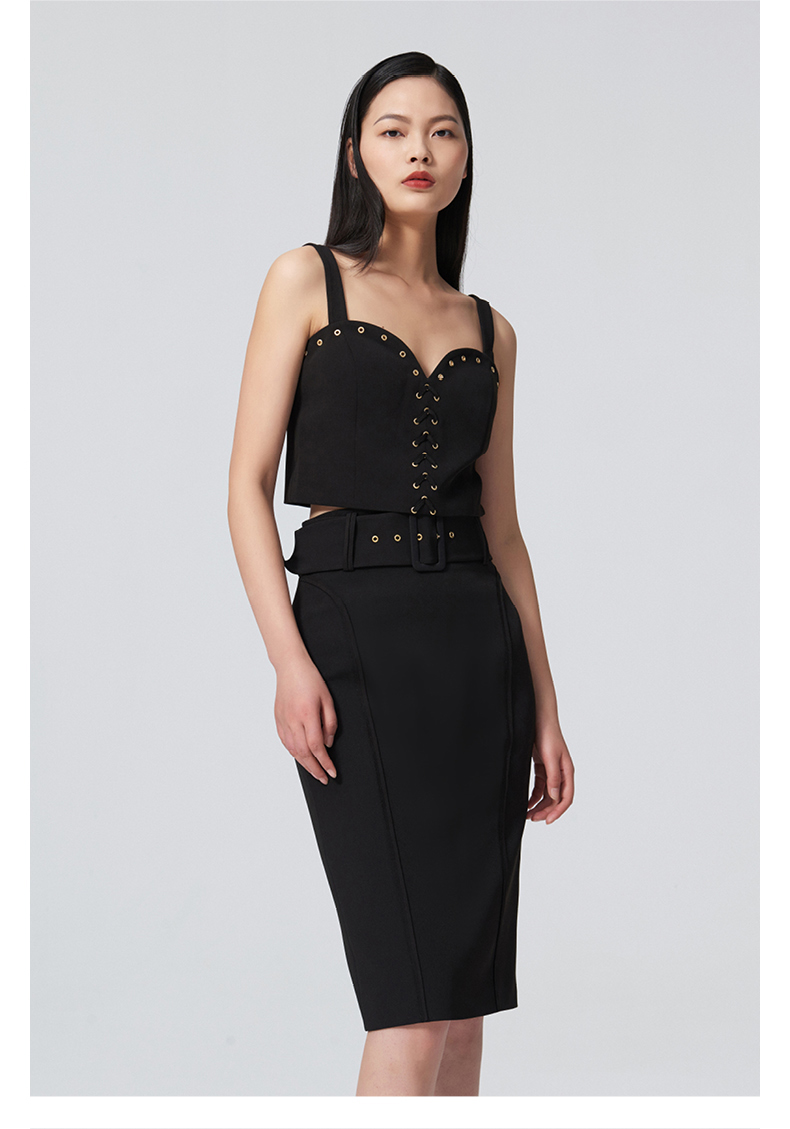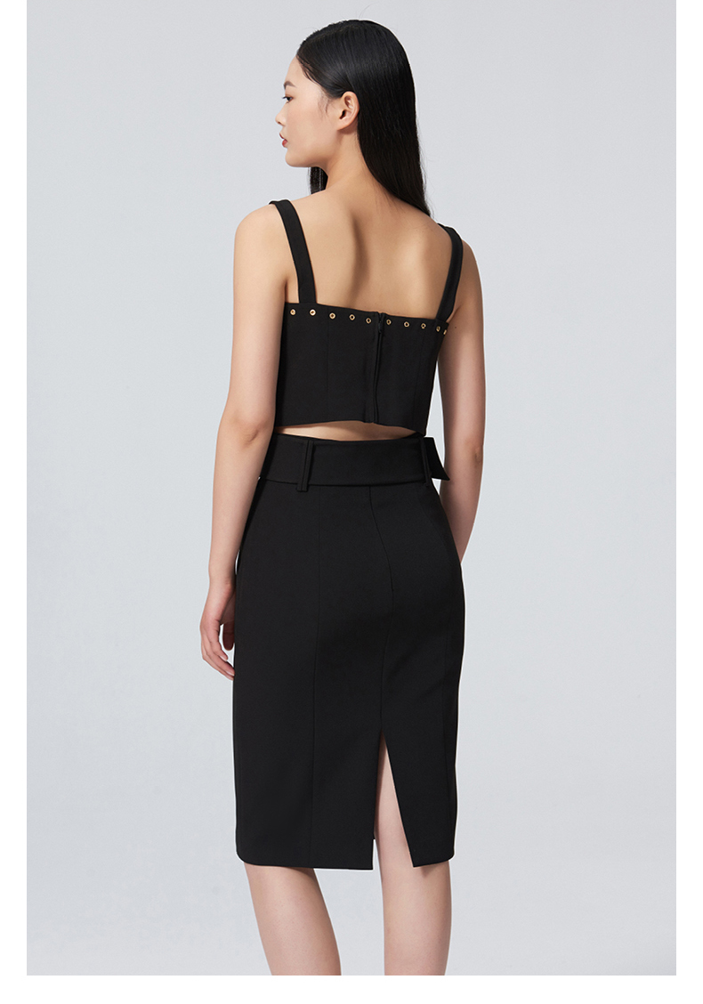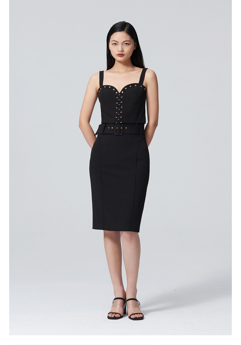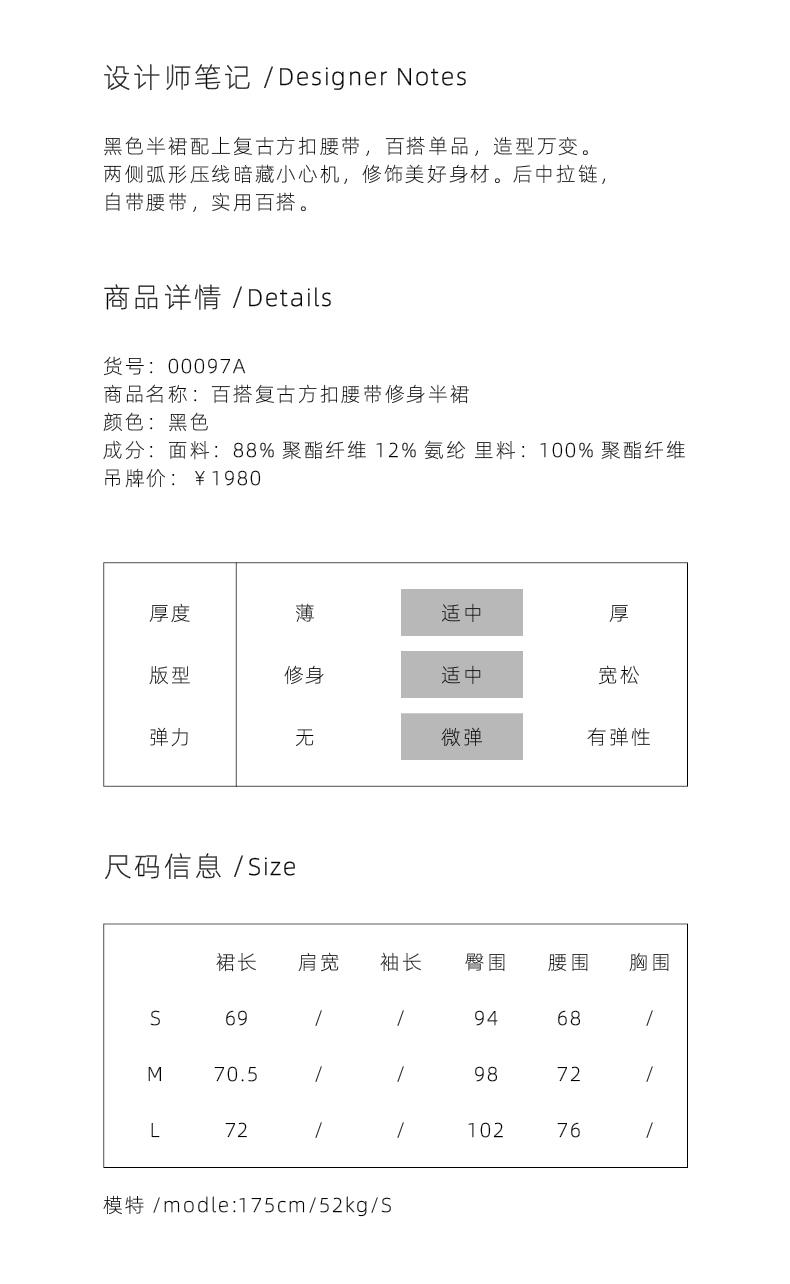 【秘密琳妮尔】设计款百搭复古方扣腰带黑色修身半裙/00097A