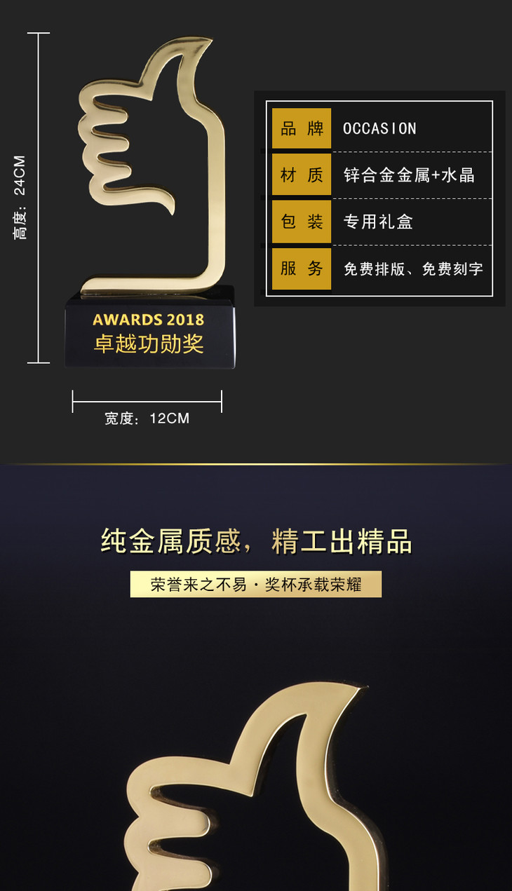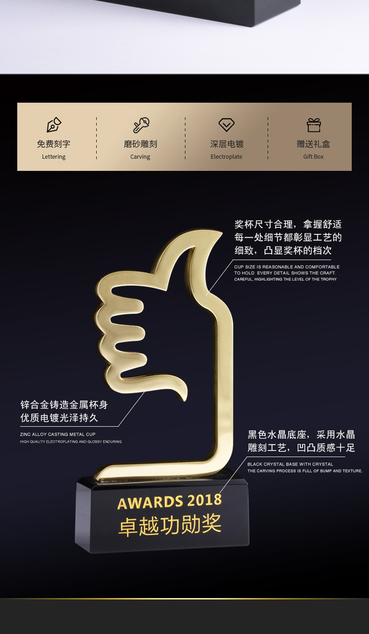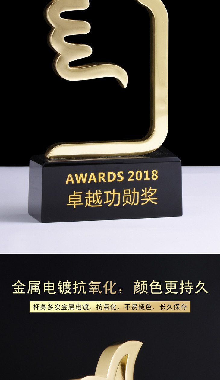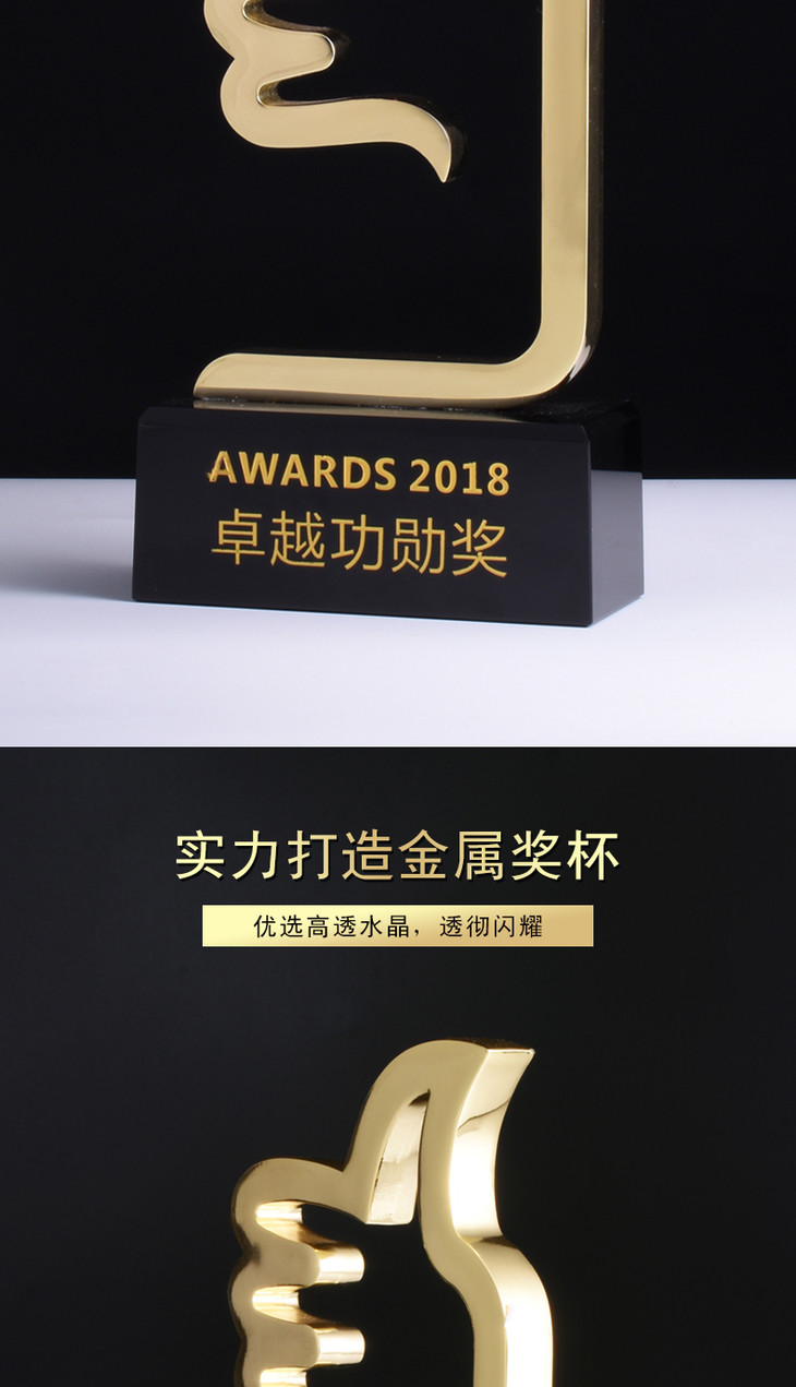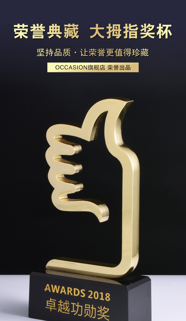 大拇指奖杯金属奖品定制创意优秀员工纪念品定做销售冠军奖杯刻字