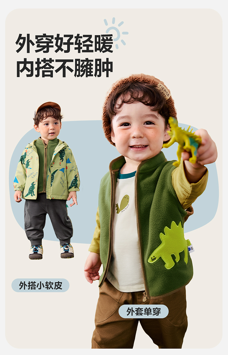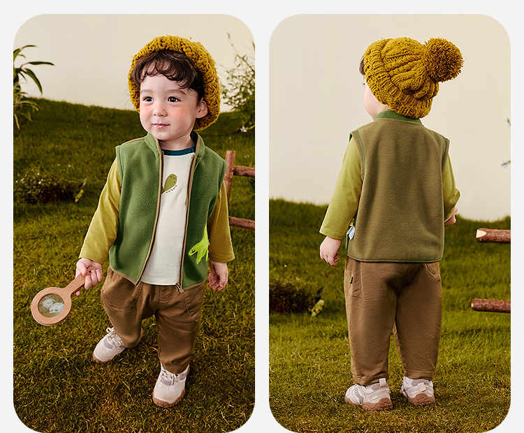 迷你巴拉男童女童马甲宝宝抗静电摇粒绒亲肤保暖内搭立领上衣