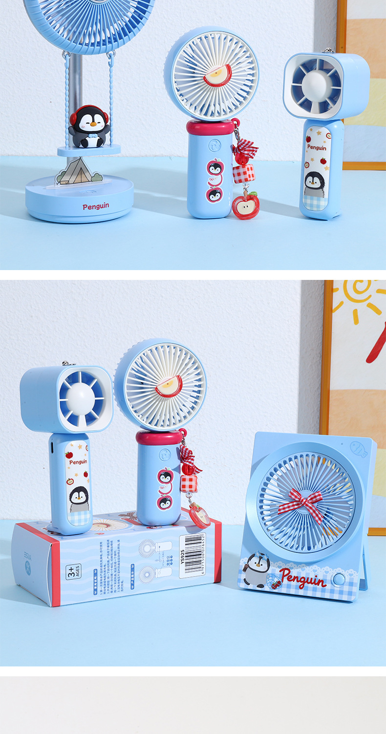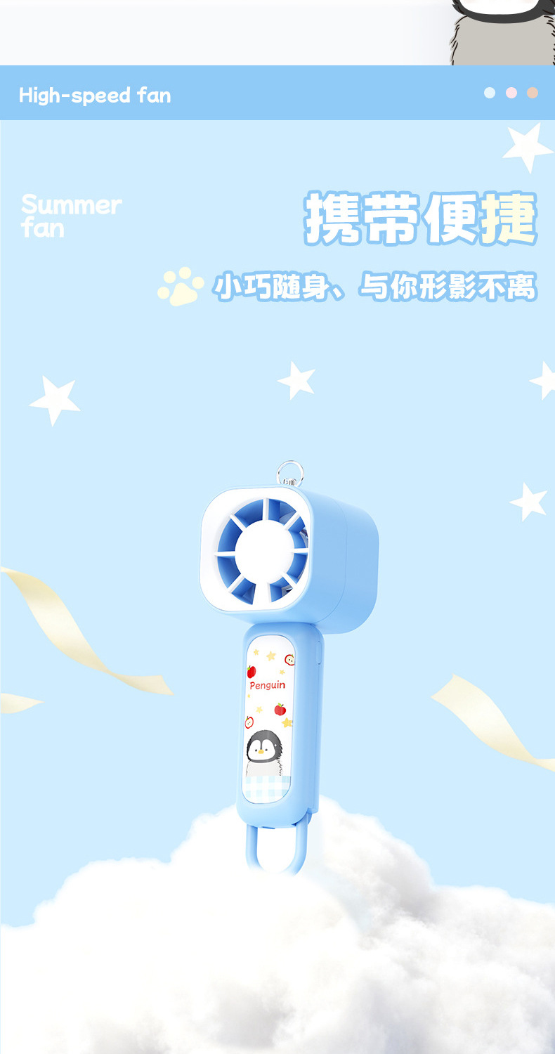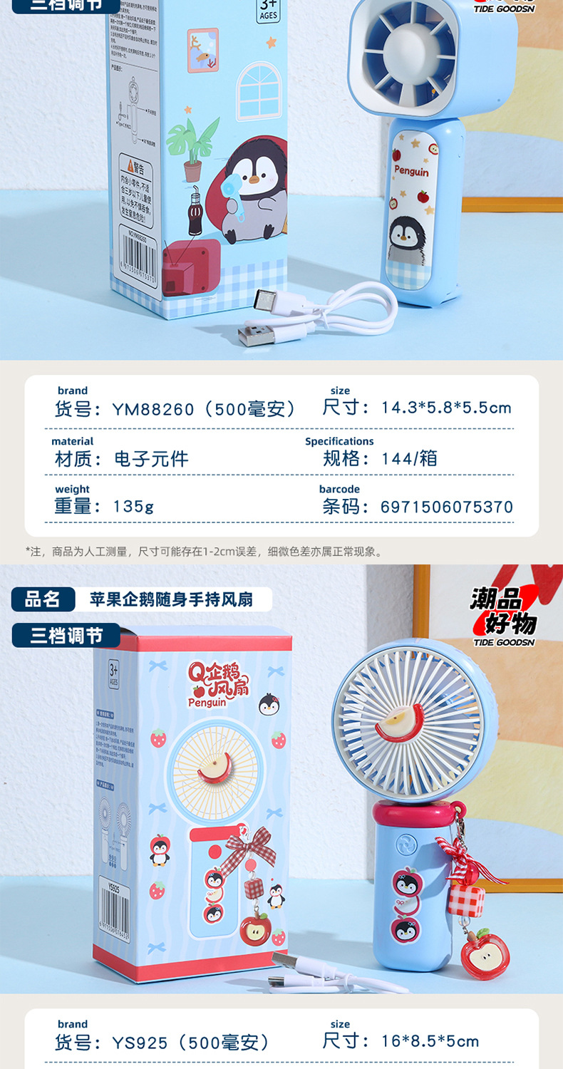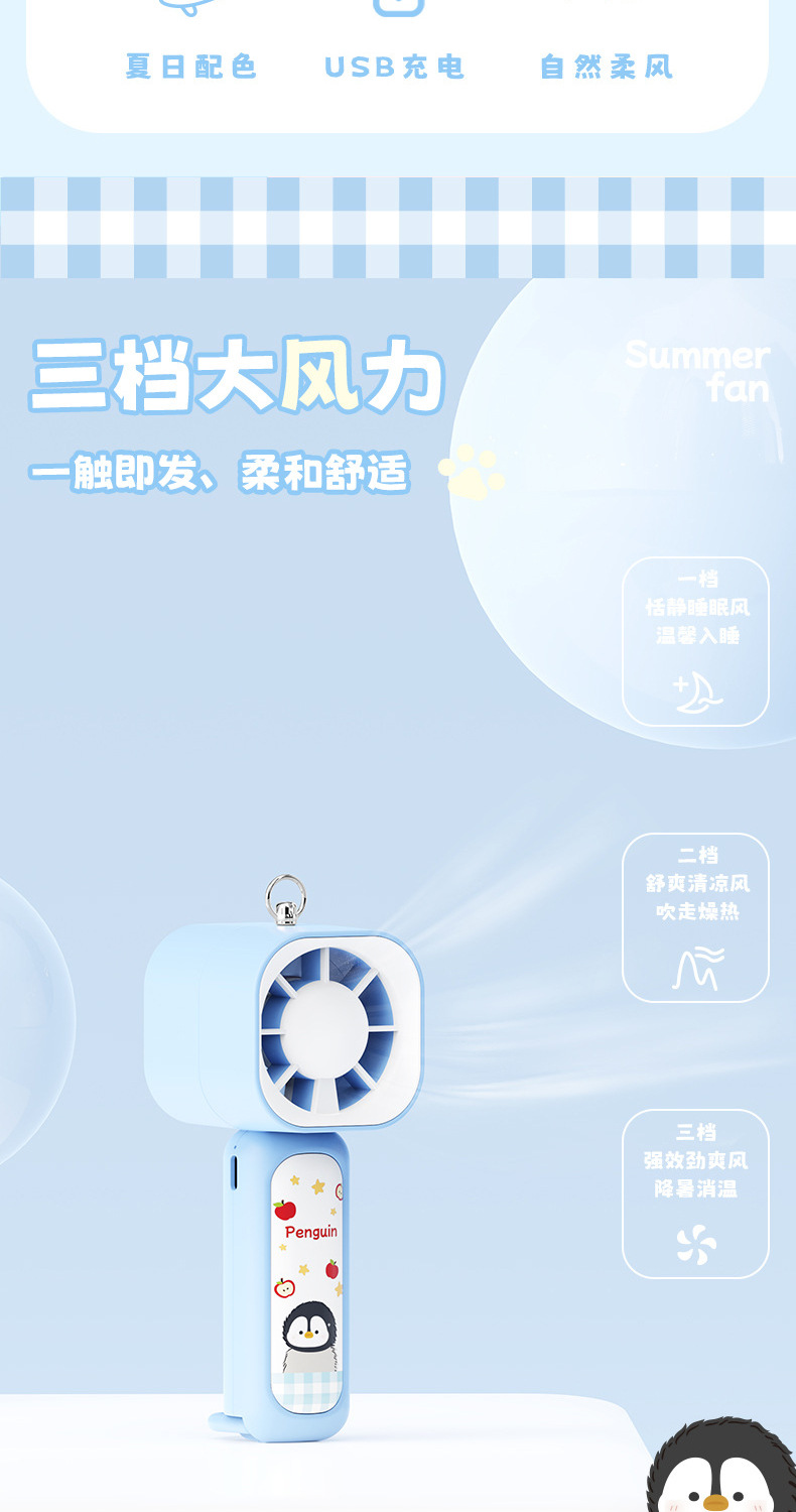 【三档大风力❗小巧便携】可爱企鹅系列台式风扇便携随身女生手持小风扇USB充电风扇彩盒装。rh