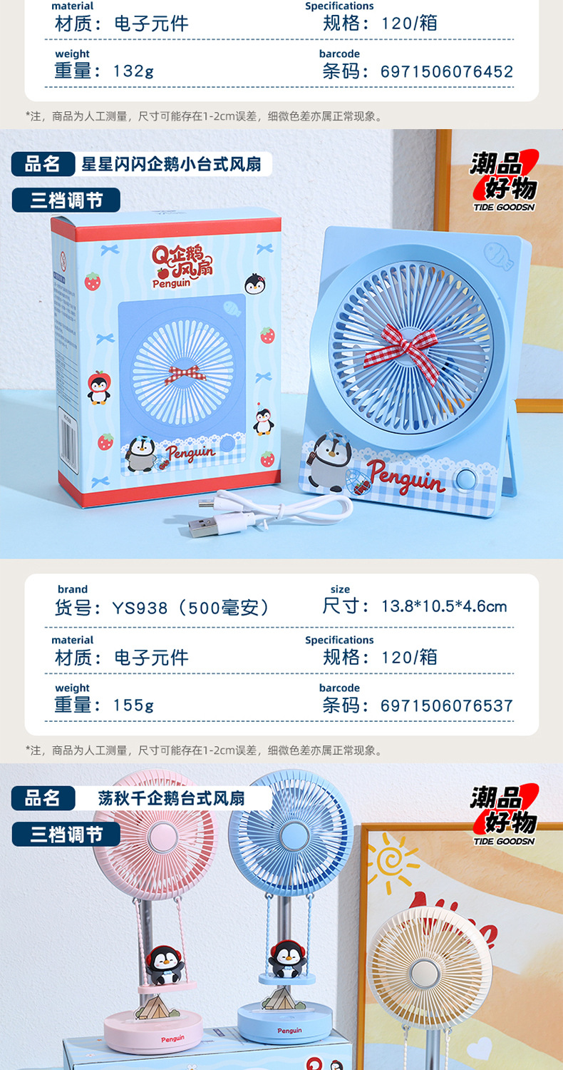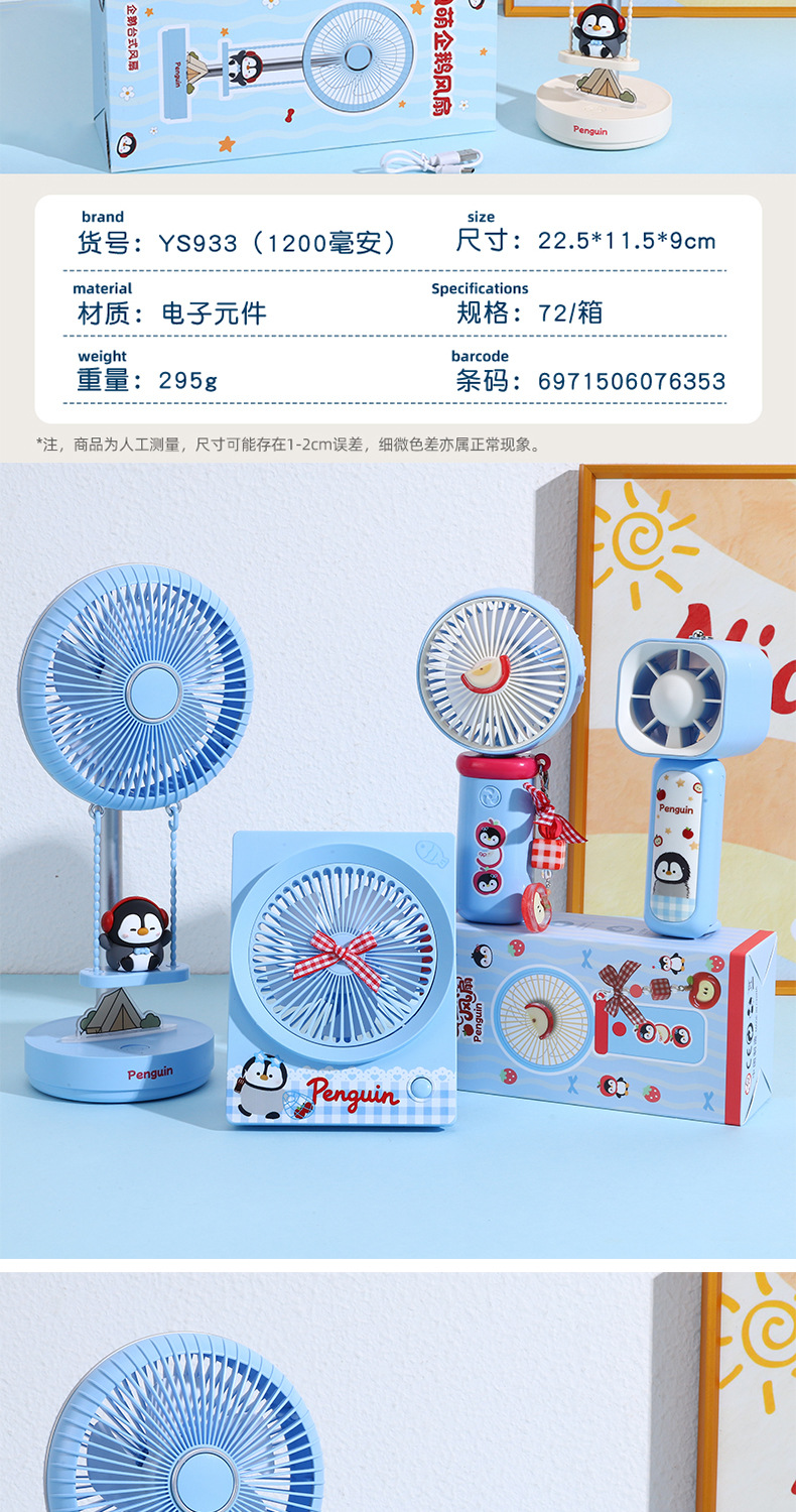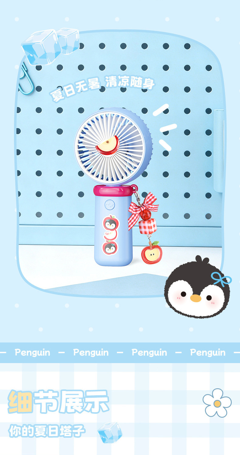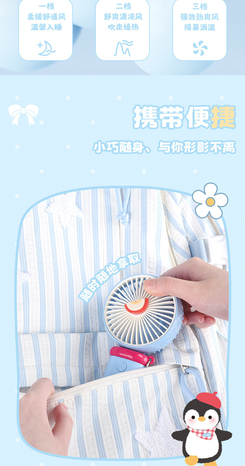【三档大风力❗小巧便携】可爱企鹅系列台式风扇便携随身女生手持小风扇USB充电风扇彩盒装。rh
