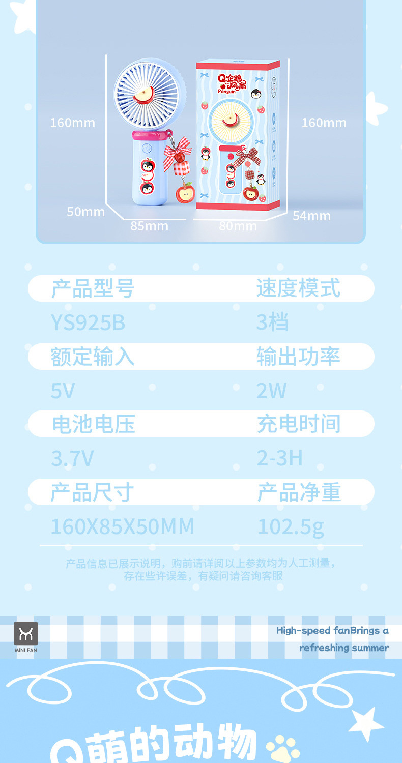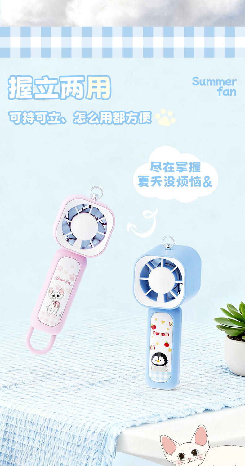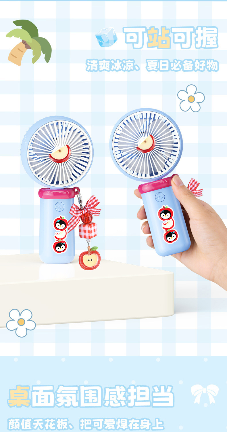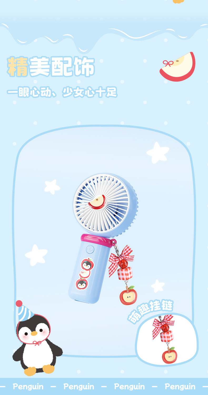 【三档大风力❗小巧便携】可爱企鹅系列台式风扇便携随身女生手持小风扇USB充电风扇彩盒装。rh