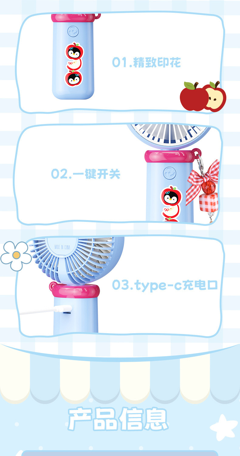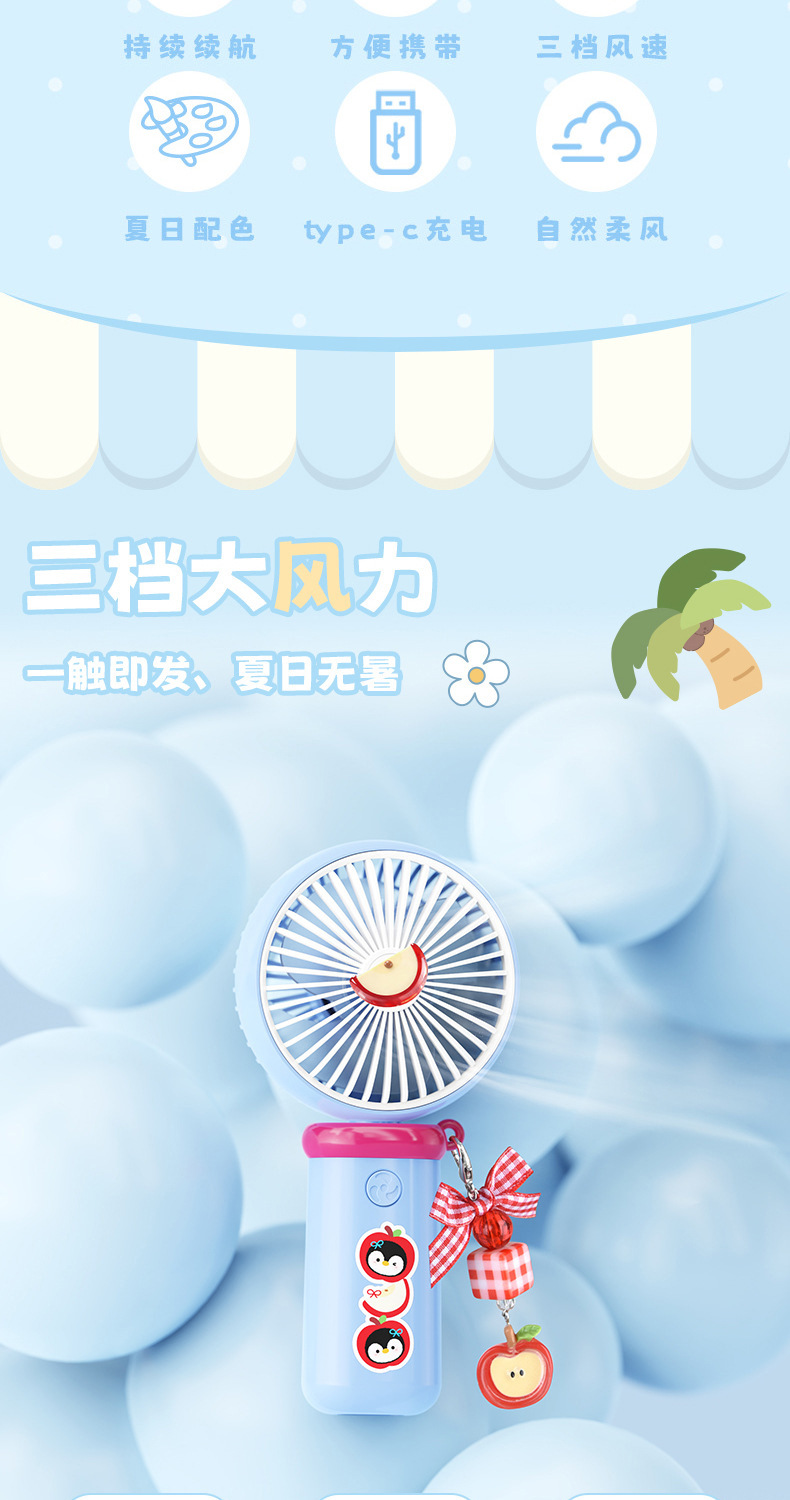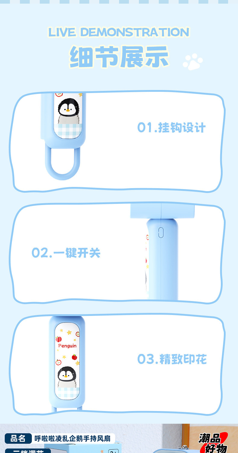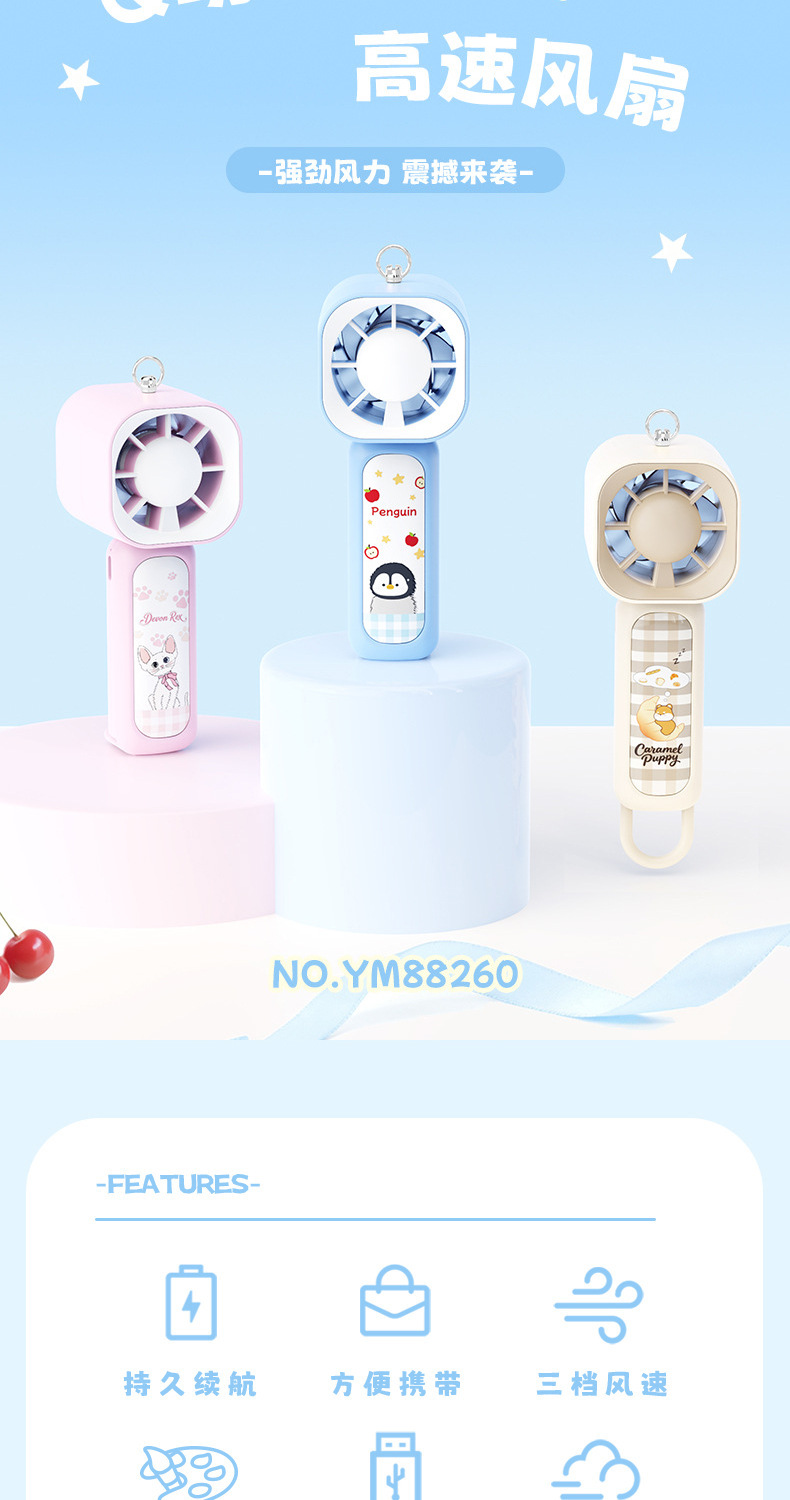 【三档大风力❗小巧便携】可爱企鹅系列台式风扇便携随身女生手持小风扇USB充电风扇彩盒装。rh