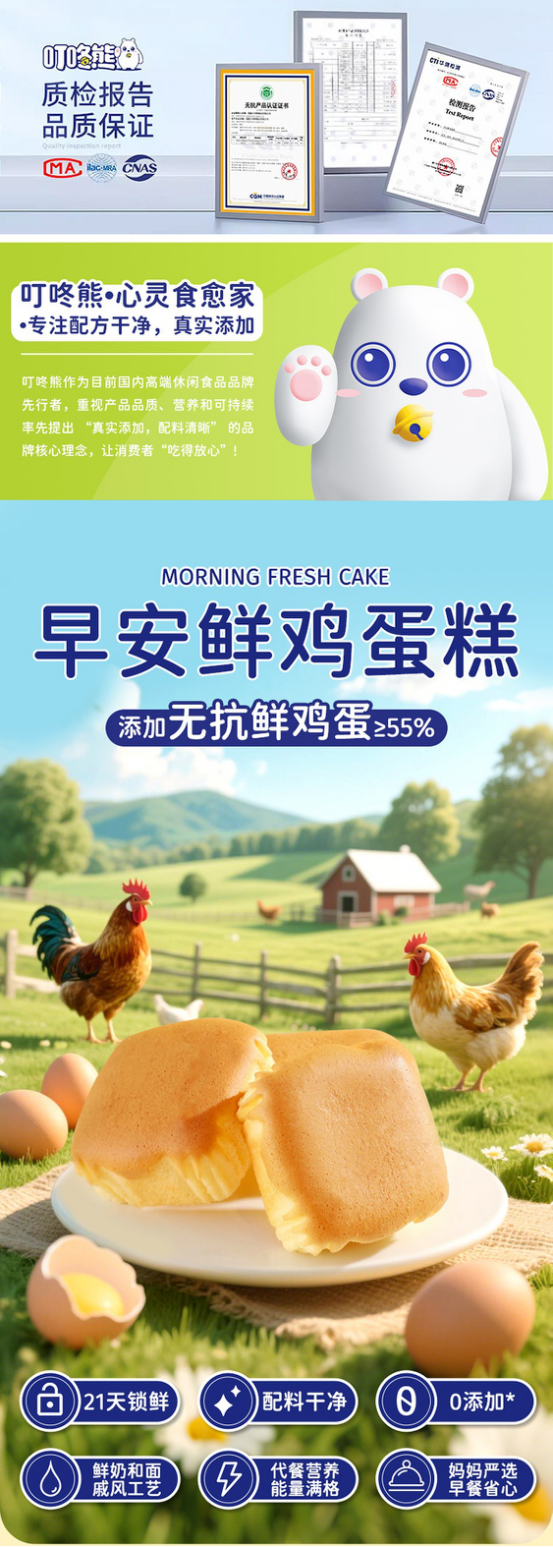 🎉叮咚熊新品「行业首创」🉑️无抗鸡蛋糕 【早安鲜鸡蛋糕】👏PICC中国人民保险承保• 品质有保障 |🔥古法新作工艺|🌼21天锁鲜•安心短保