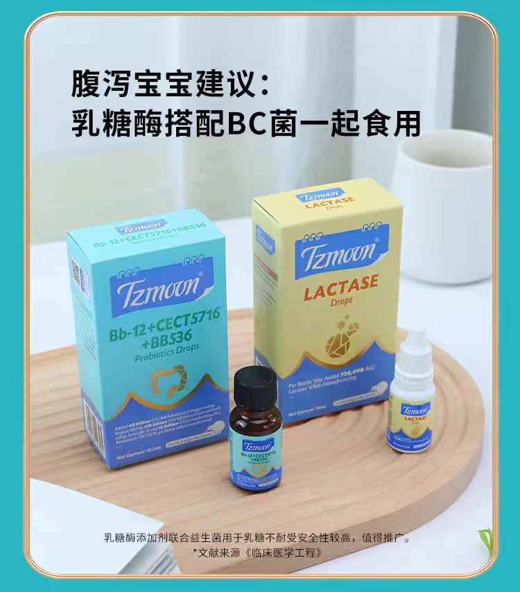特别建议:腹泻宝宝乳糖酶搭配bb-12益生菌一起喂养