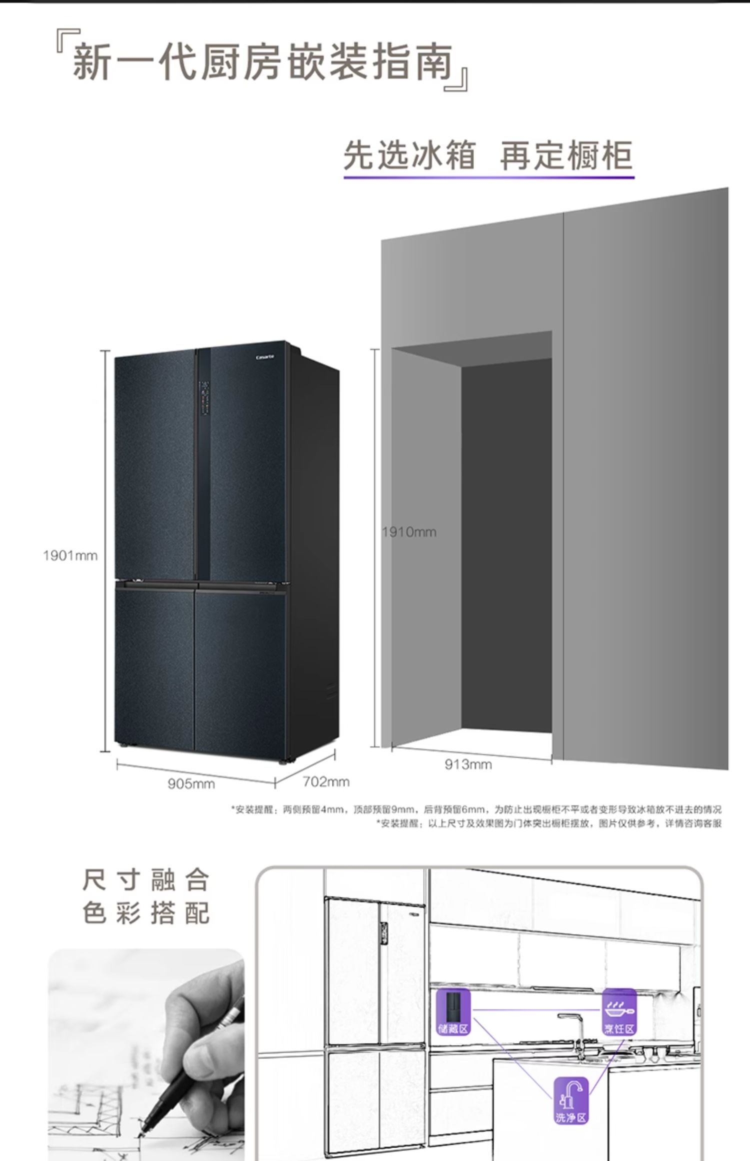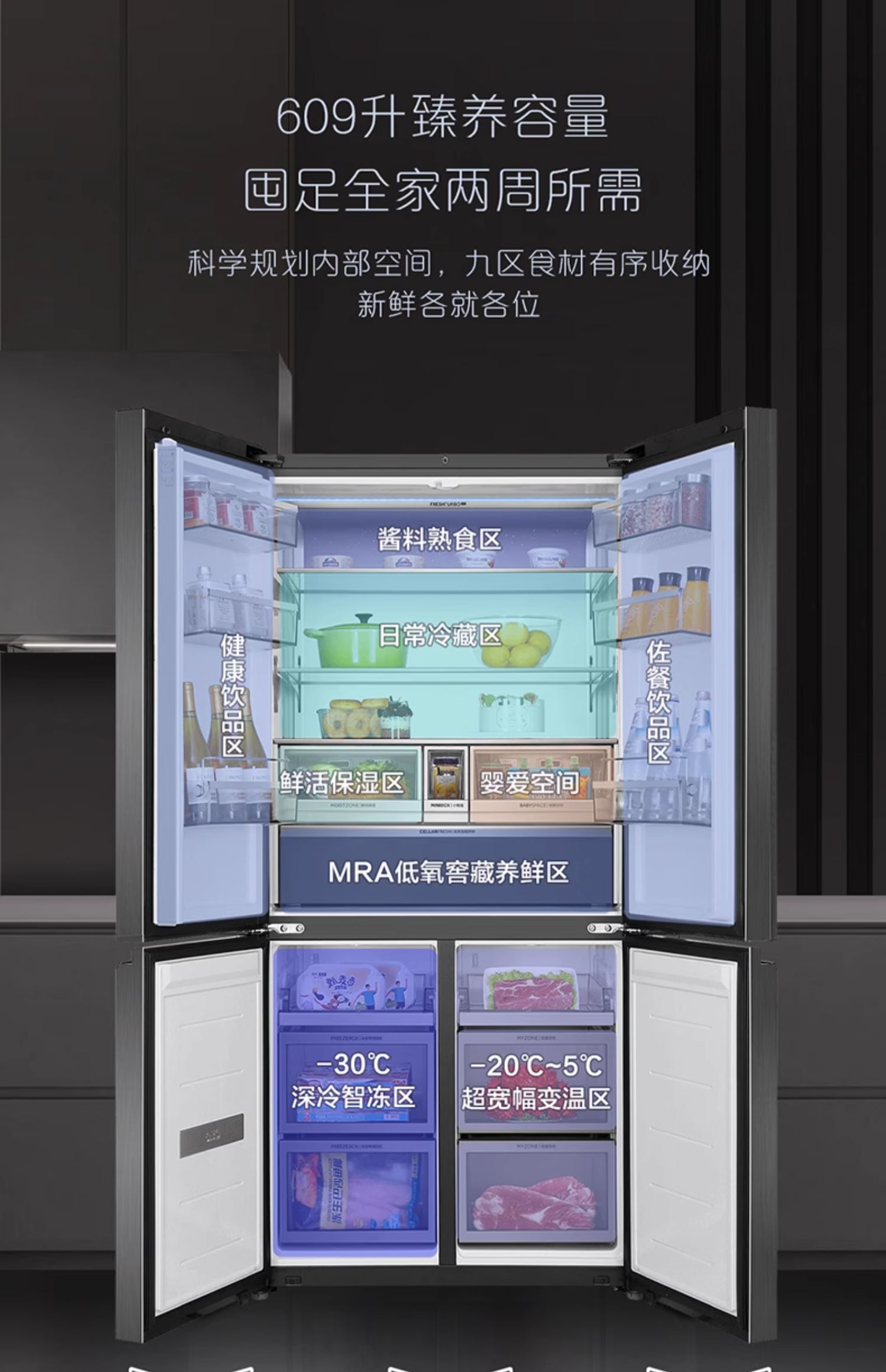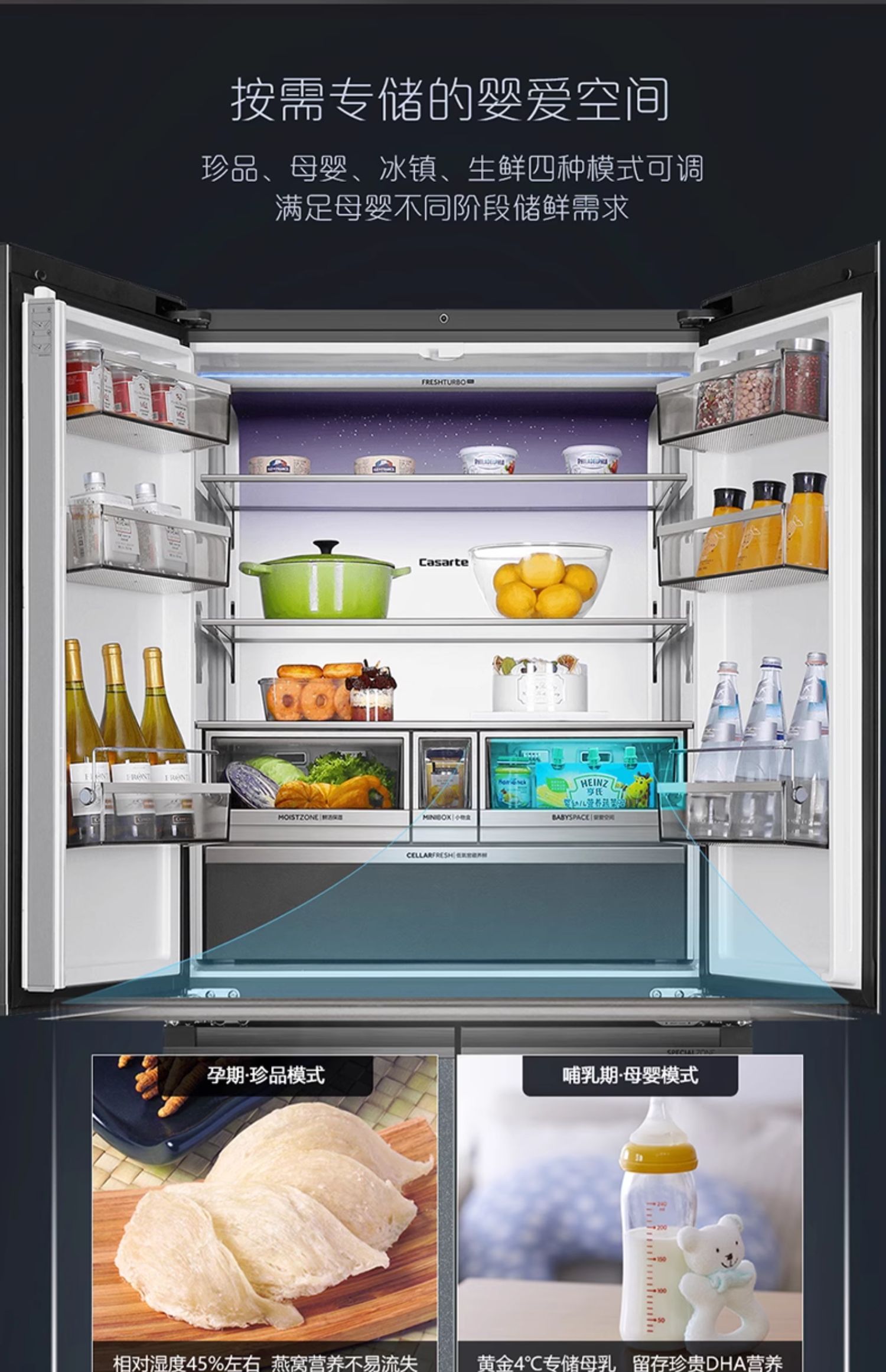 [零嵌]卡萨帝609L嵌入式大容积十字四门风冷无霜一级能效家用冰箱